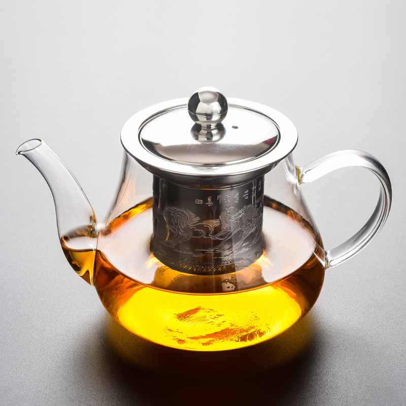 • "투명한 손잡이 ""여덟 마리의 말 냄비"" 투명한 모래 무늬 손잡이 컵"