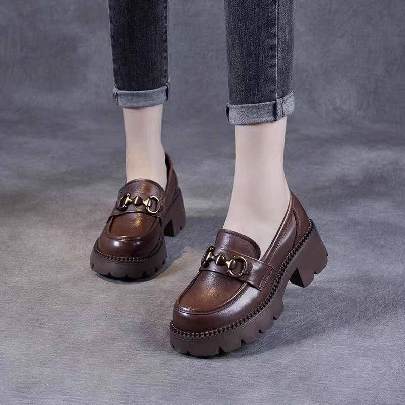 인기 여성화, 패셔너블한 작은 가죽신, 캐주얼 슈즈, 로퍼, 2025년 신상 플랫폼 슈즈, 두꺼운 밑창, 부드러운 밑창, 다용도스토어 가기