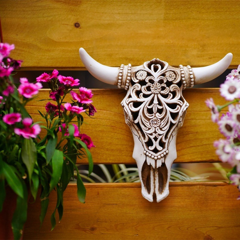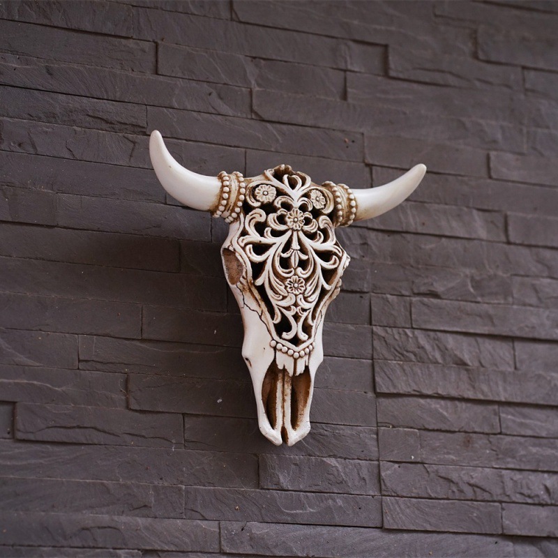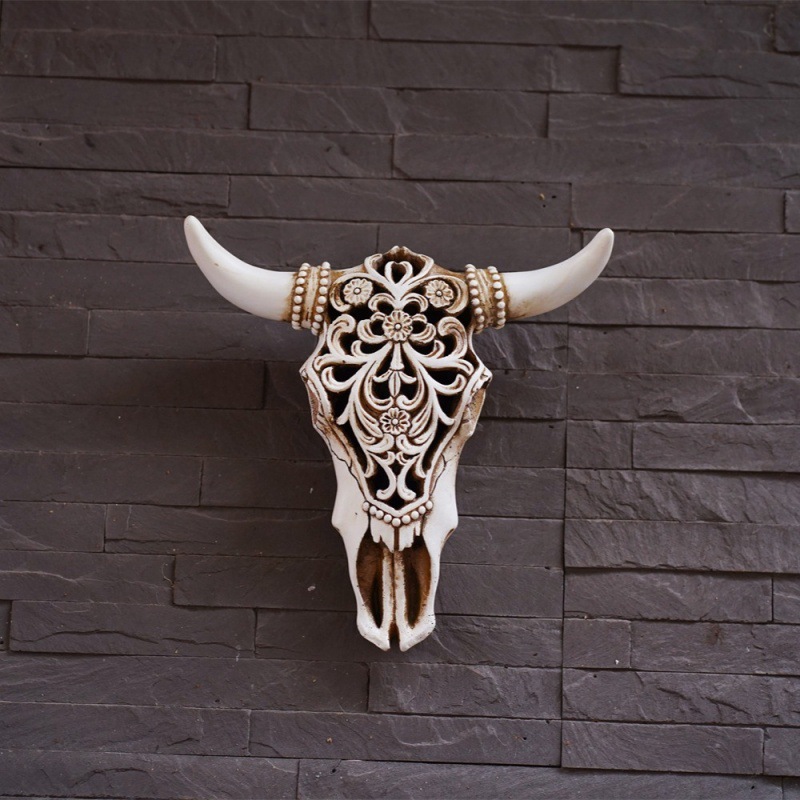 빈티지 소 머리 펜던트 벽 교수형 벽 장식 창조적 인 동물 두개골 장식 홈 거실 장식 수지 공예