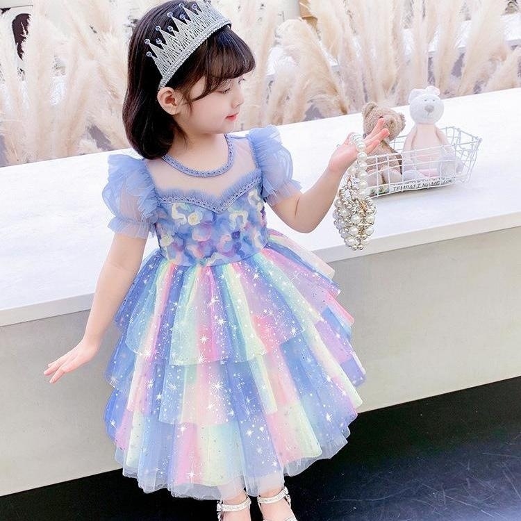 여자 여름 2025 서양식 드레스 새로운 무지개 공주 드레스 아기 투투 스커트스토어 가기