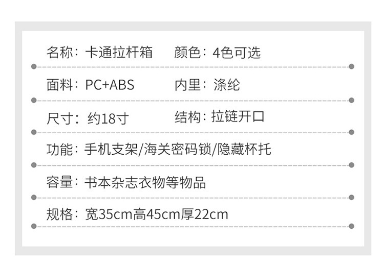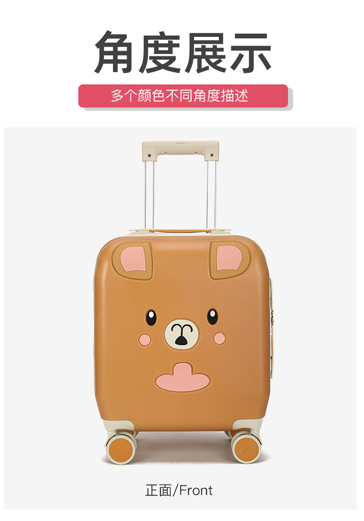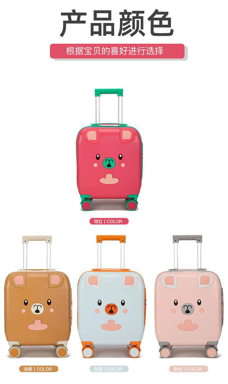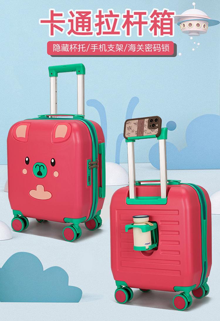 18inch 어린이 여행가방, 비밀번호 잠금 기능, 컵홀더, 회전 바퀴, 대용량, 만화 캐릭터, 선물용 트롤리 가방