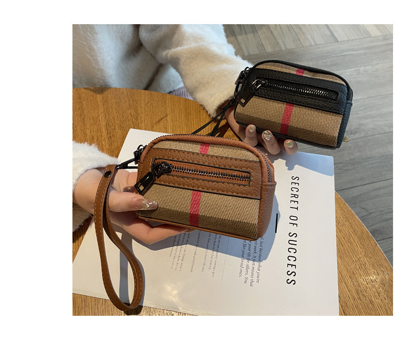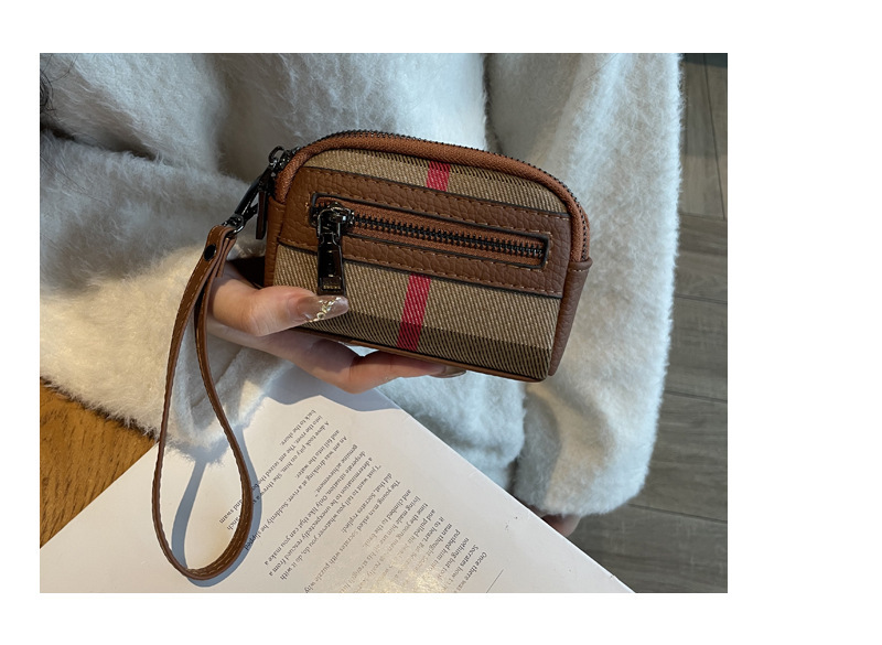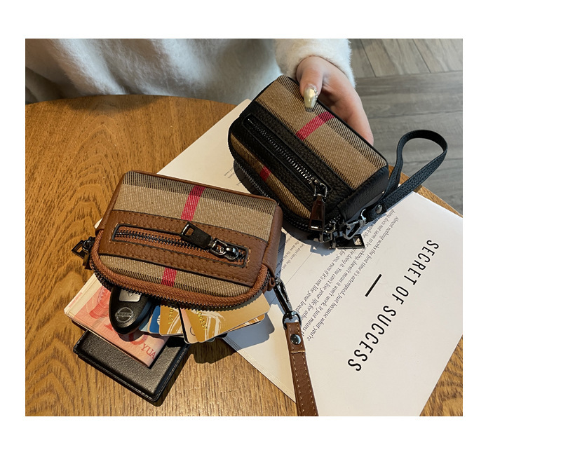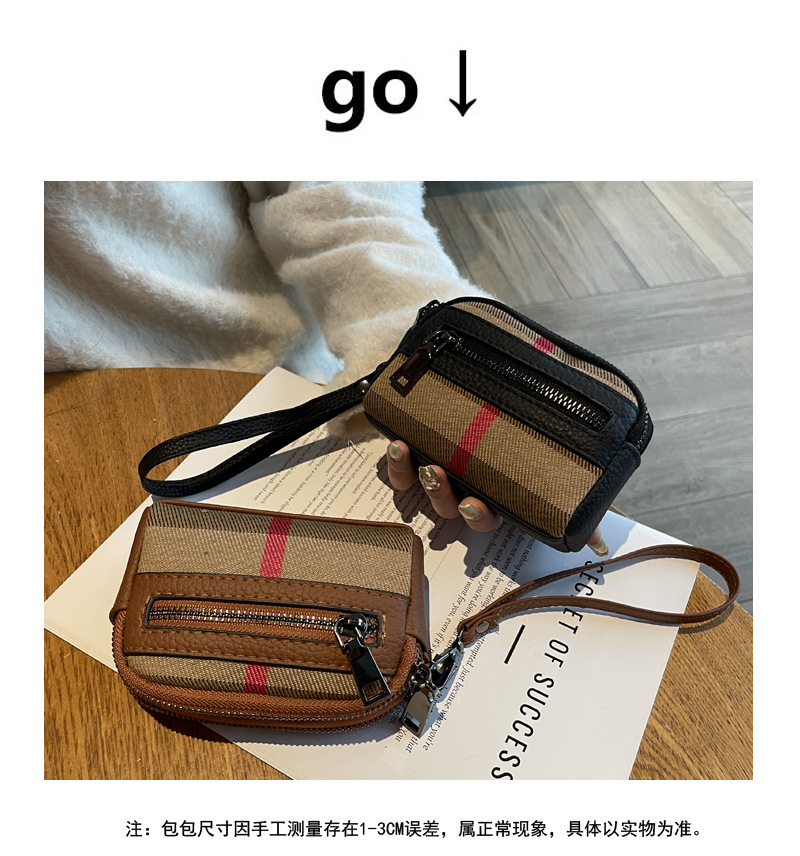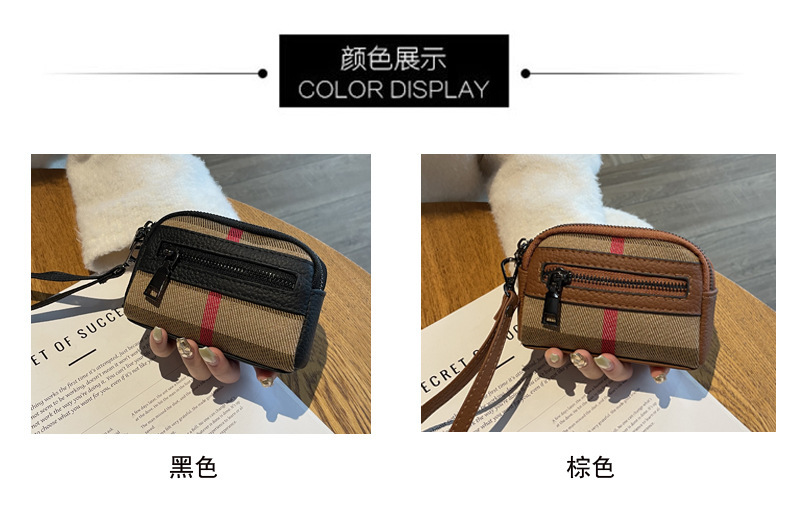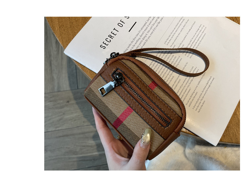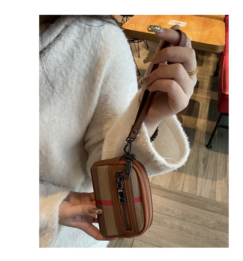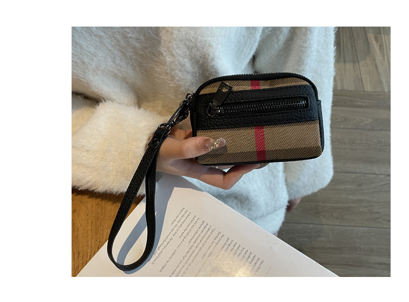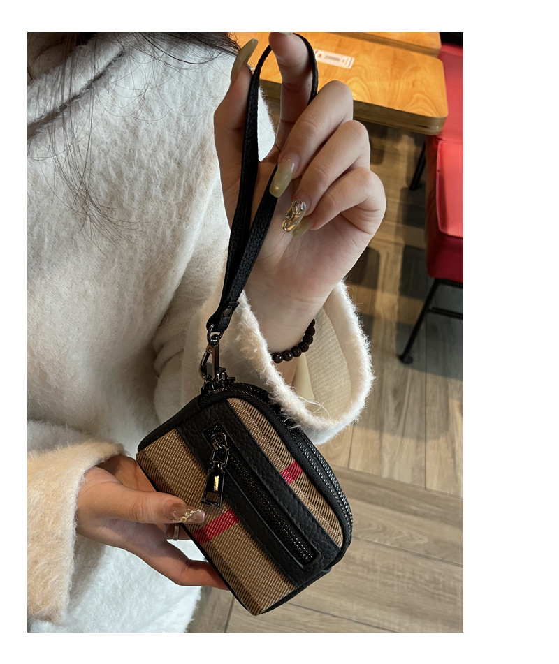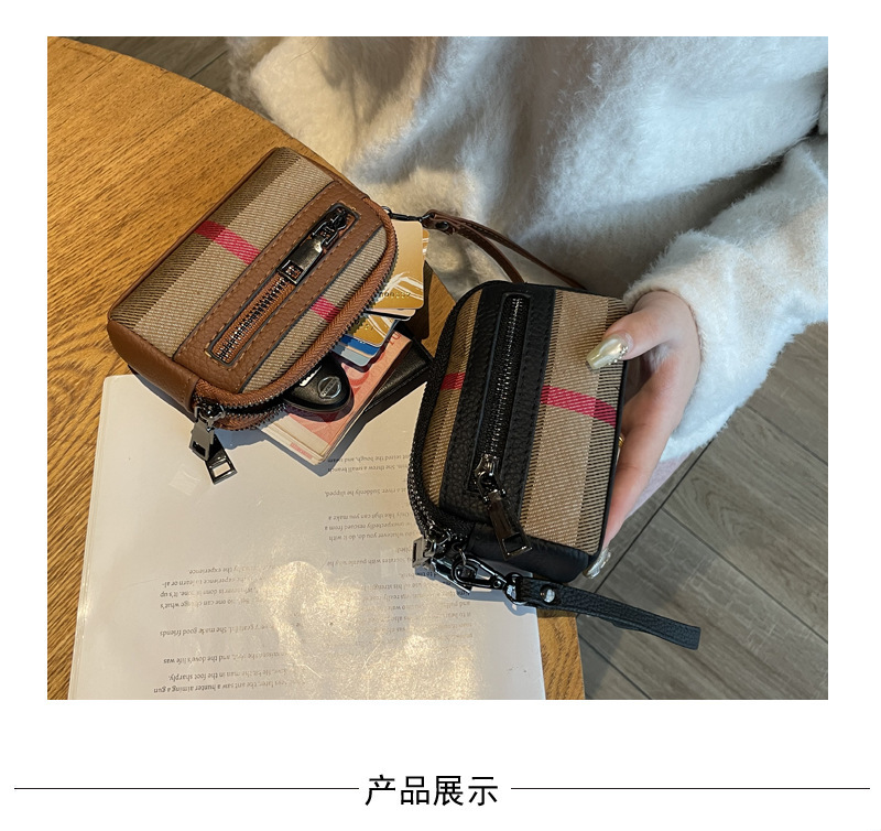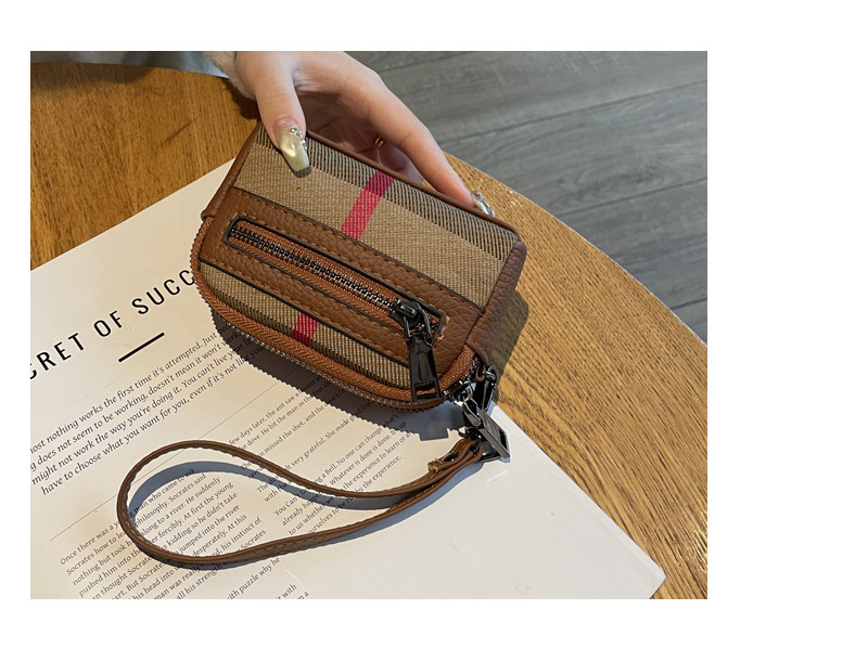 1층 소가죽 고급 소형 향수 카드 홀더 2025 봄 인기 복고풍 격자 무늬 소형 동전 지갑 다기능스토어 가기
