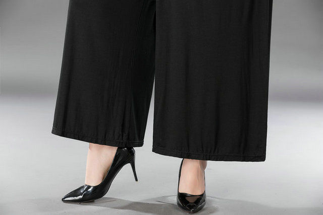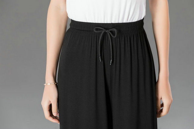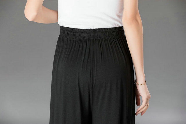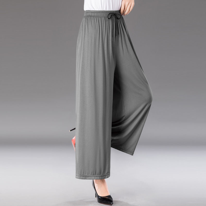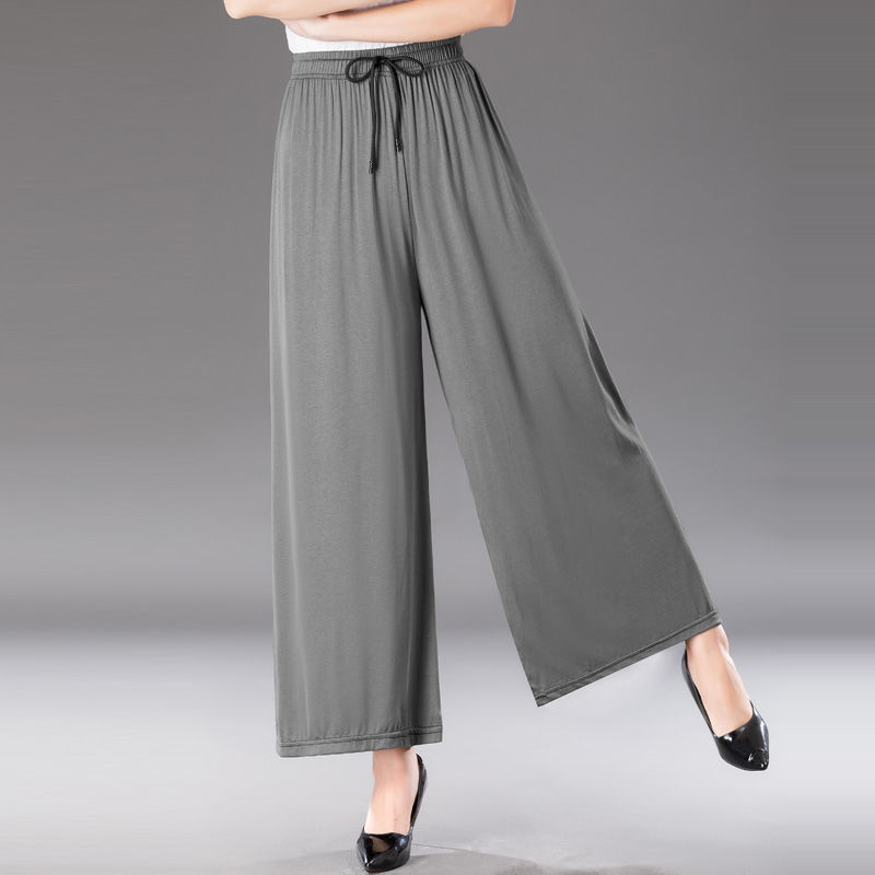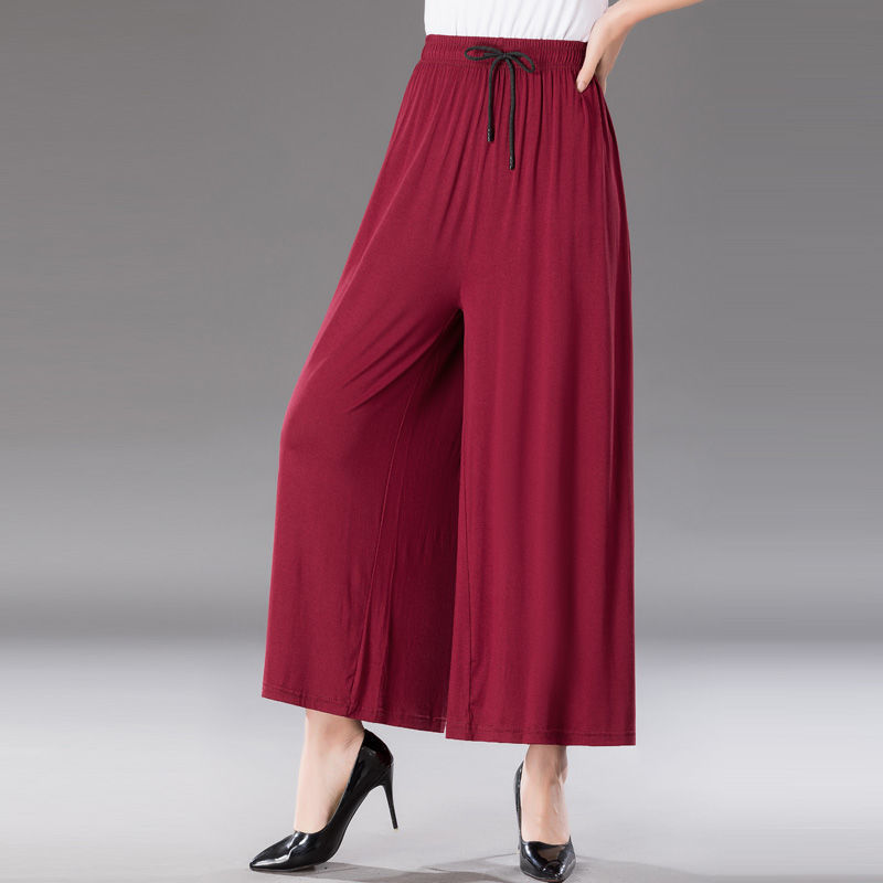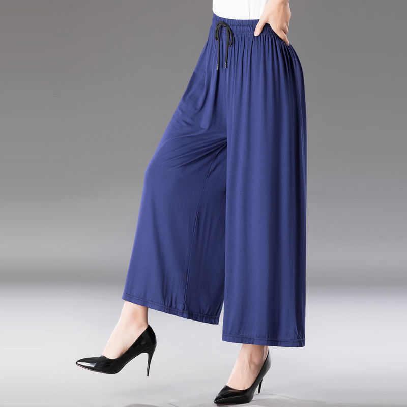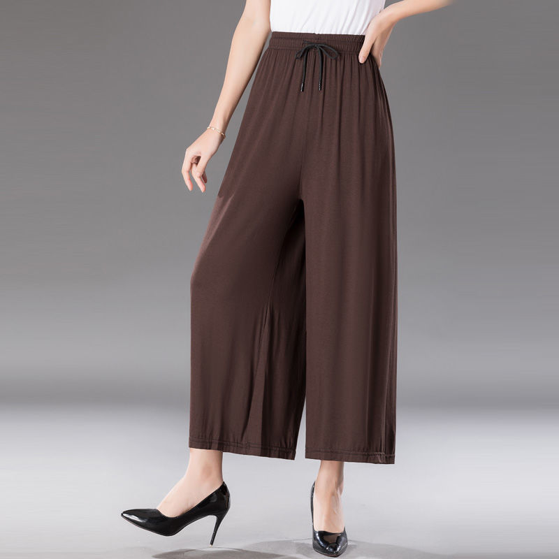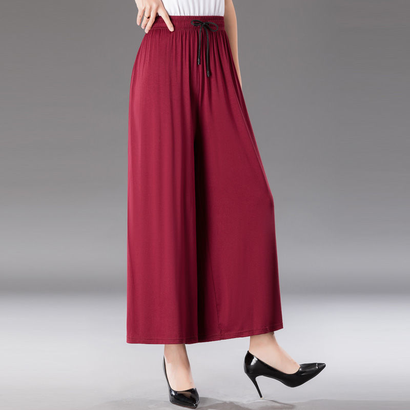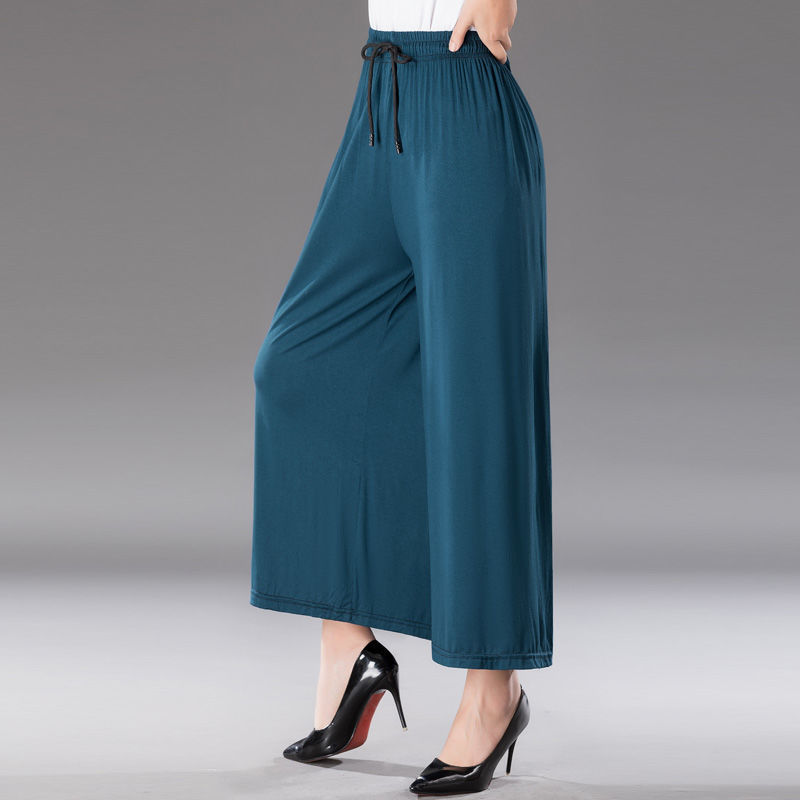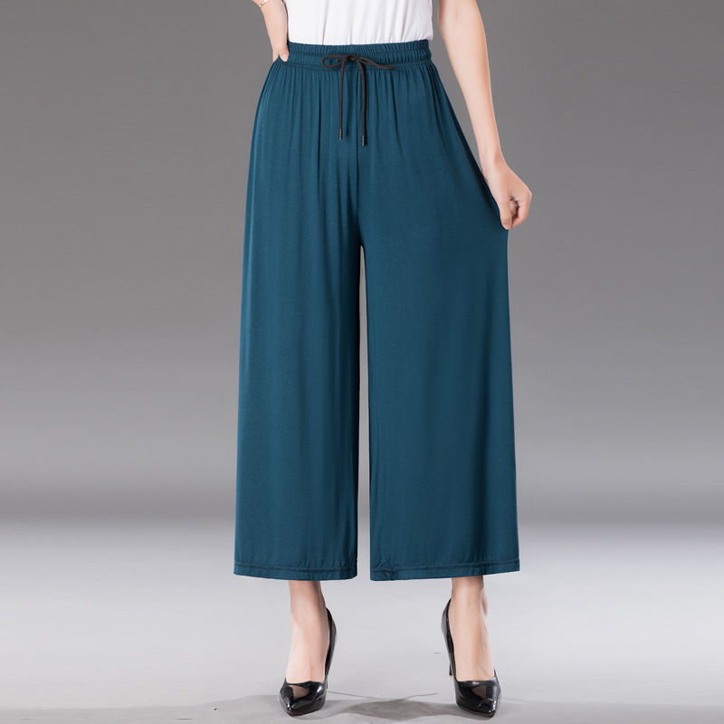 중년 및 노인 모달 넓은 다리 바지 여성의 높은 허리 처짐 여름 얇은 어머니의 잘린 바지 느슨한 치마 바지 플러스 사이즈 슬링 다리