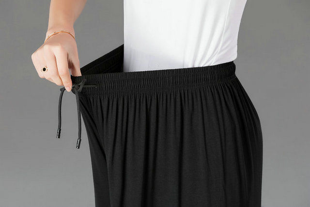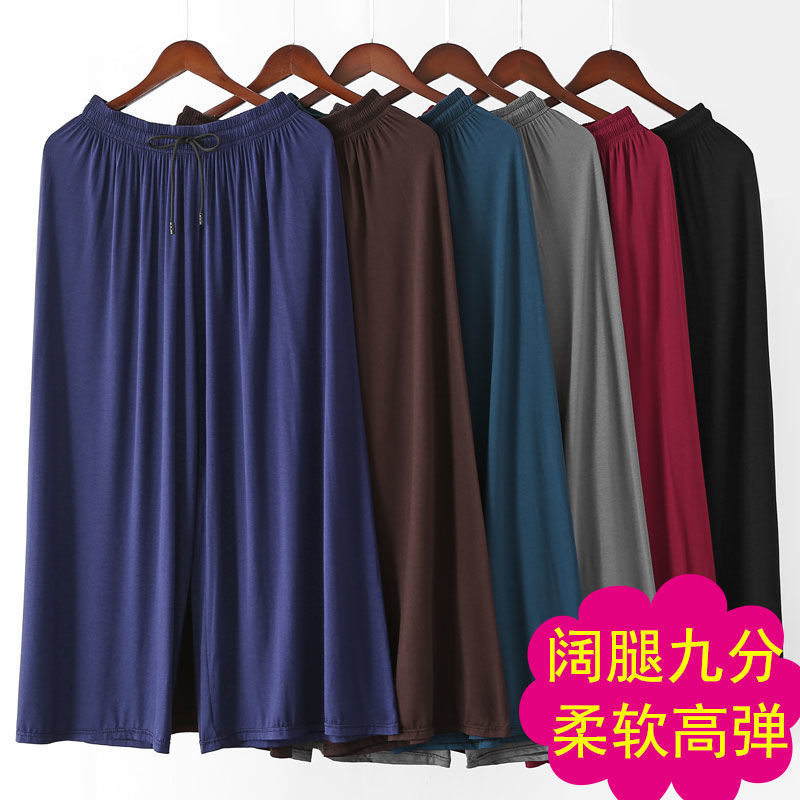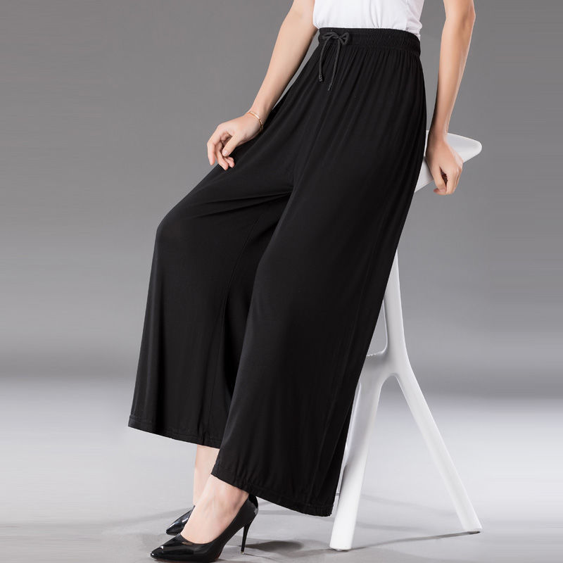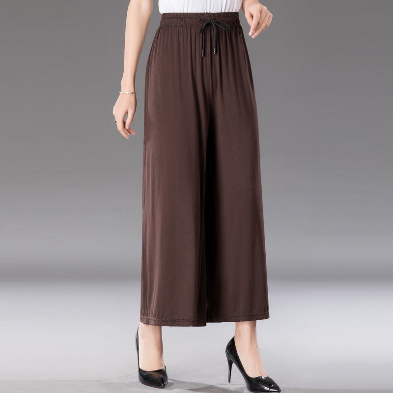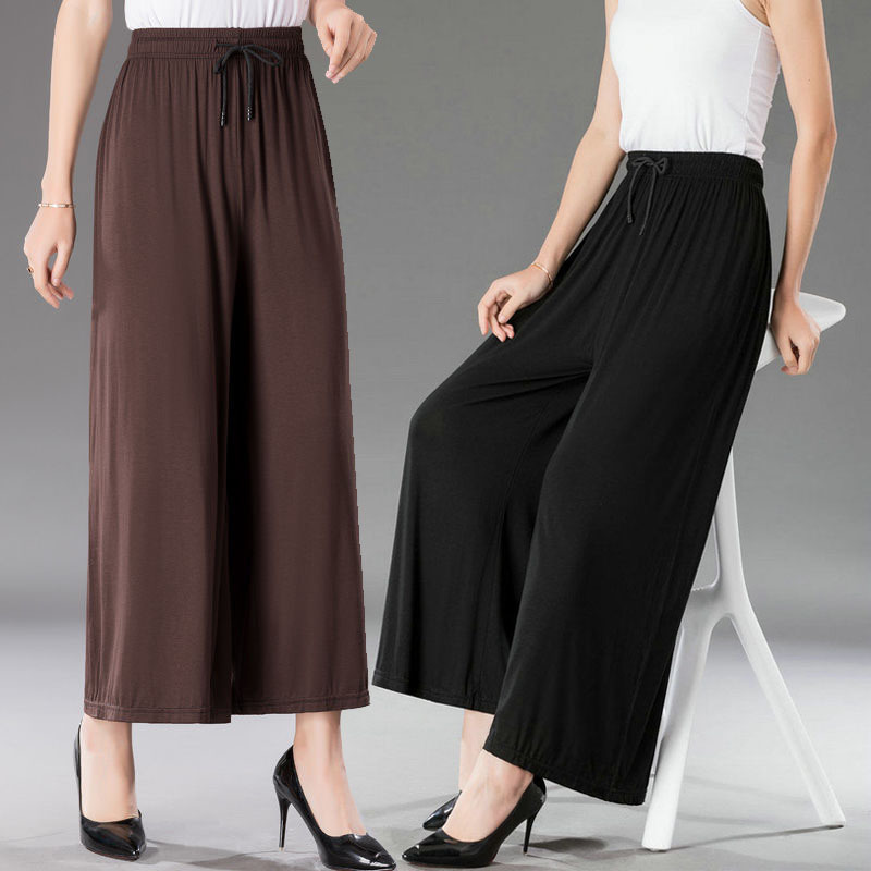 중년 및 노인 모달 넓은 다리 바지 여성의 높은 허리 처짐 여름 얇은 어머니의 잘린 바지 느슨한 치마 바지 플러스 사이즈 슬링 다리스토어 가기