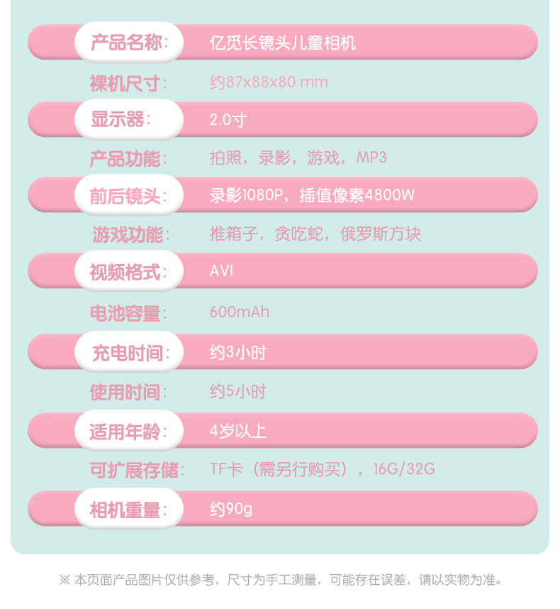 产品名称:亿觅2.0儿童单反相机X12