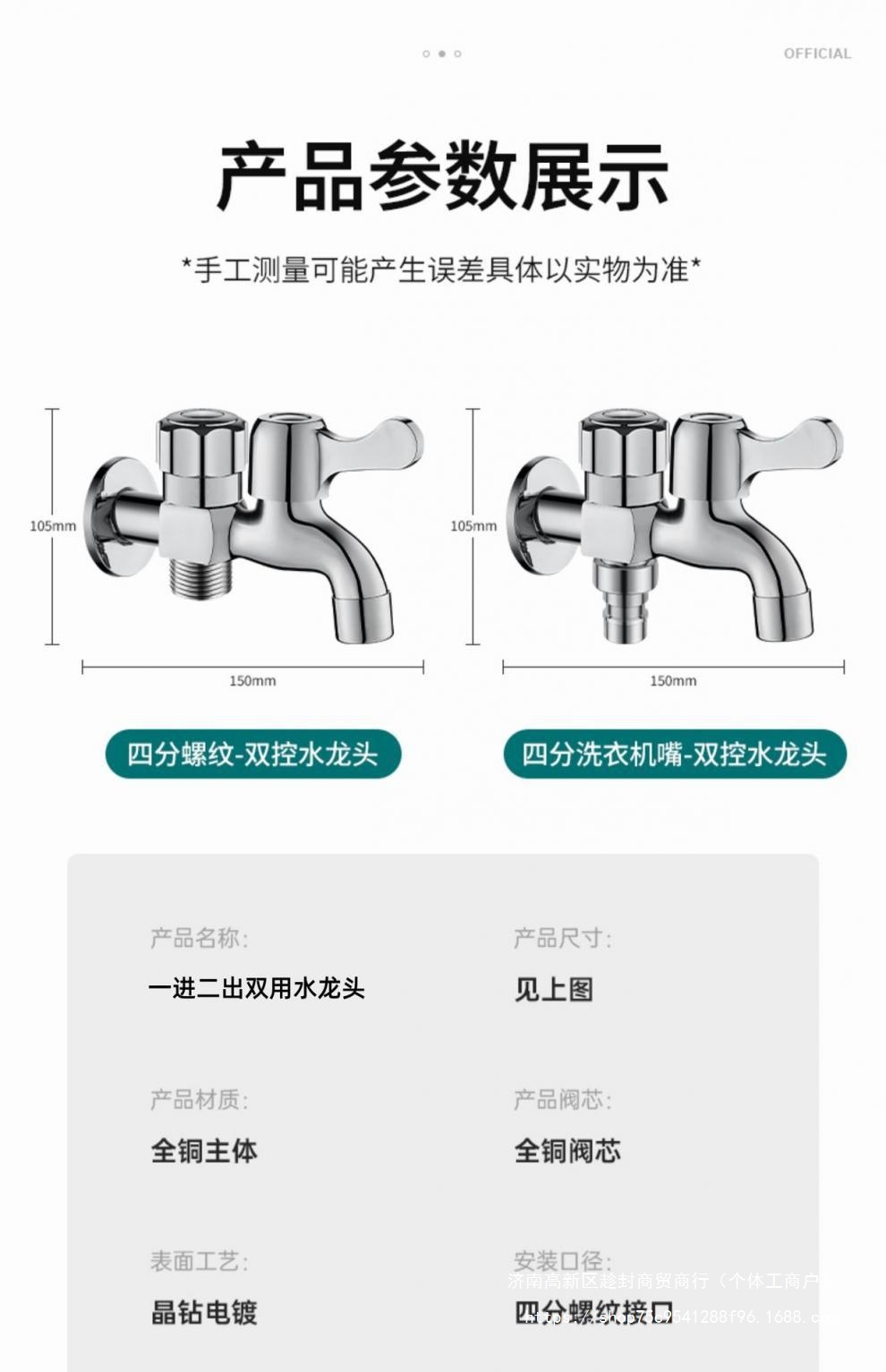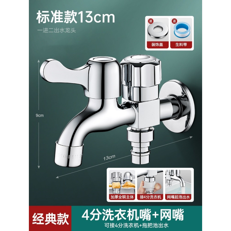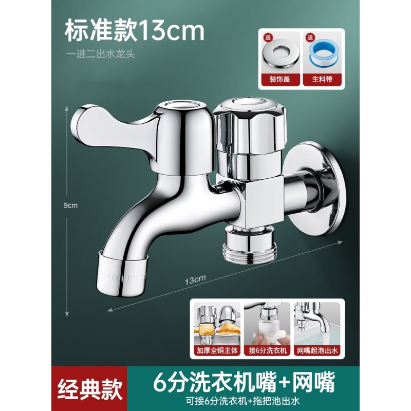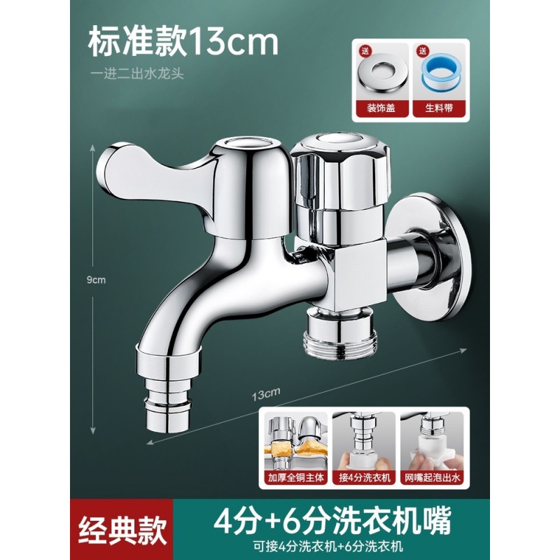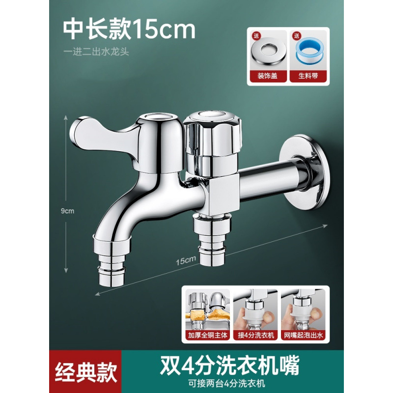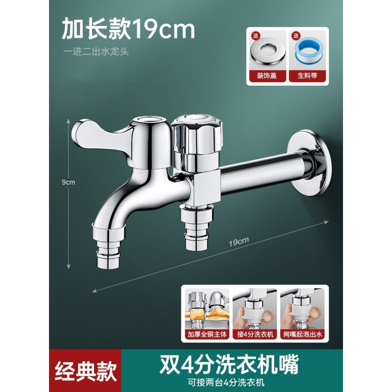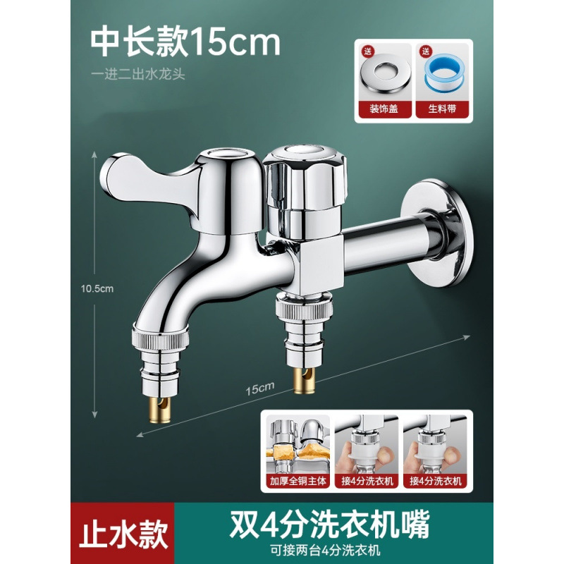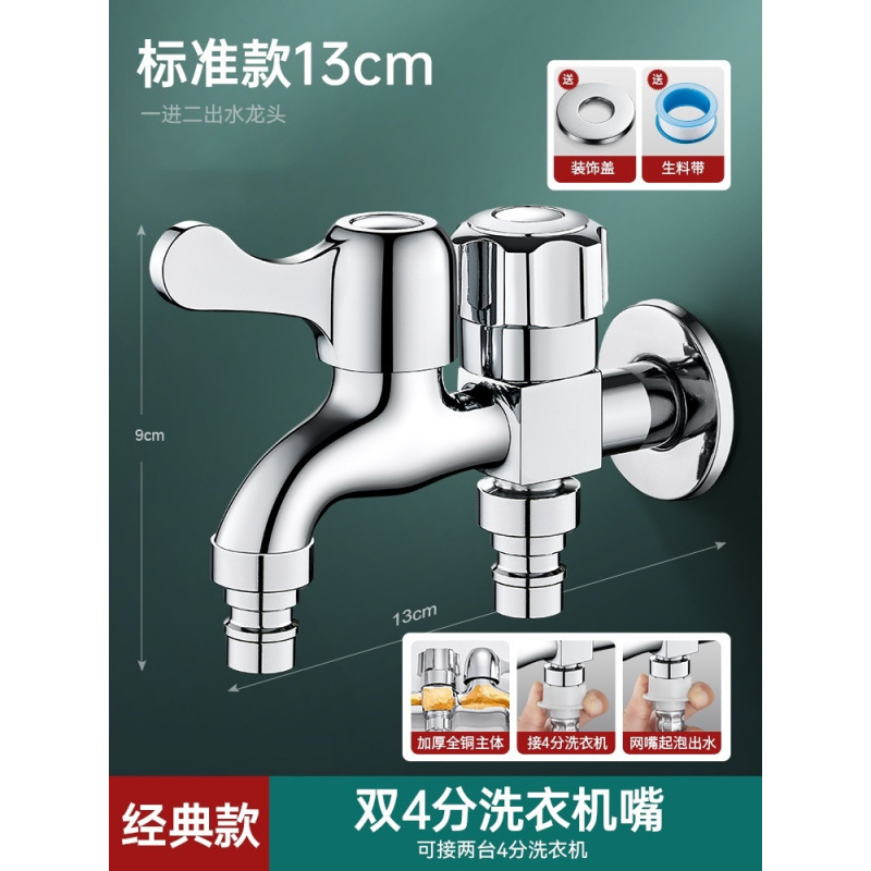 모든 구리 세탁기 확장 수도꼭지 1 대 2 아웃 더블 콘센트 1-2 커넥터 가정용스토어 가기