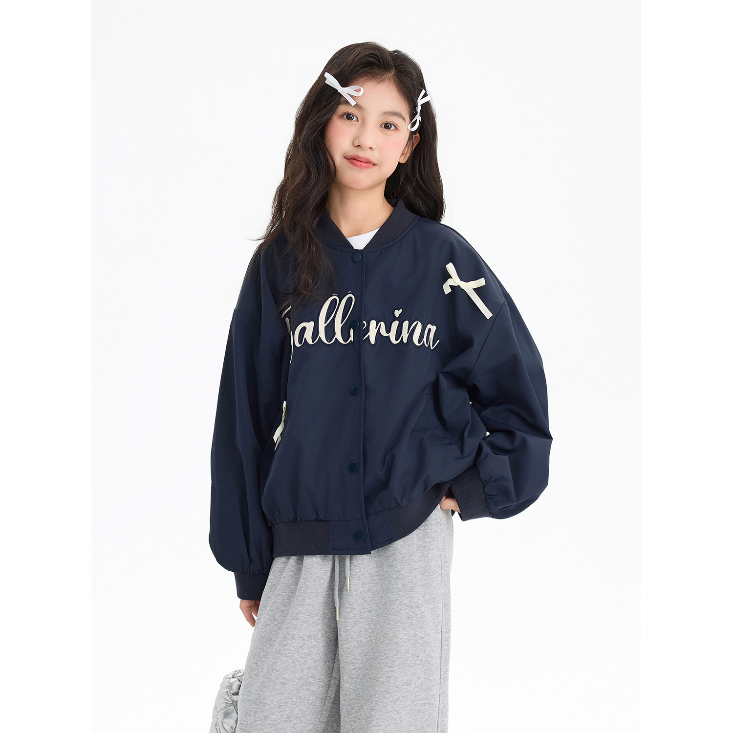 여아 리본 코트 2025 가을 신작 아동 한국 스타일 캐주얼 레터 야구 유니폼 루즈 재킷 탑