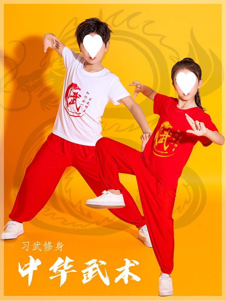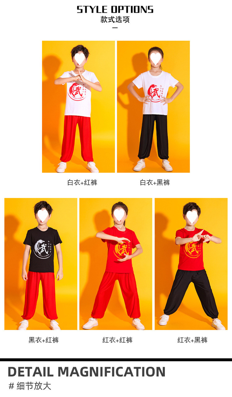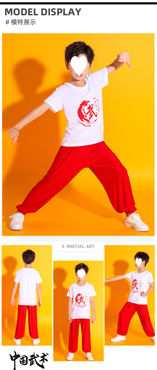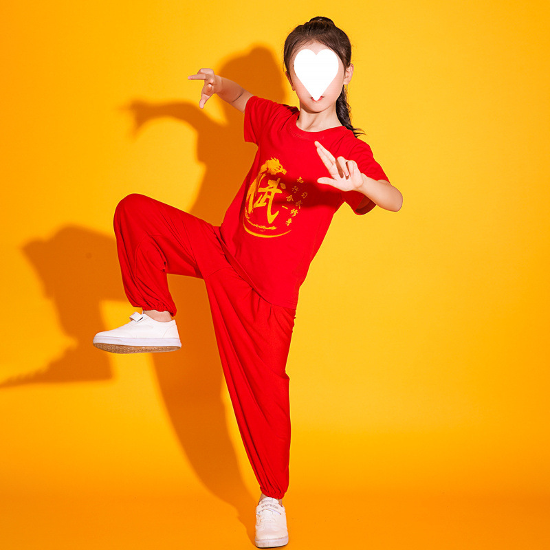 어린이 중국 스타일 우슈 의류 학생 공연 의류 경쟁 공연 의류 쿵푸 연습 우슈 어린이 연습 의류스토어 가기