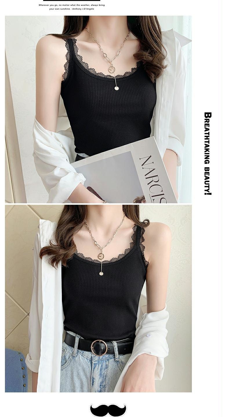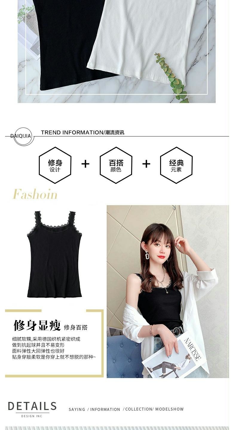 여성용 민소매 탑 여름용 이너웨어 2025 신상 슬림핏 가을 레이스 트림 민소매 탄력성 있는 베이스 셔츠스토어 가기