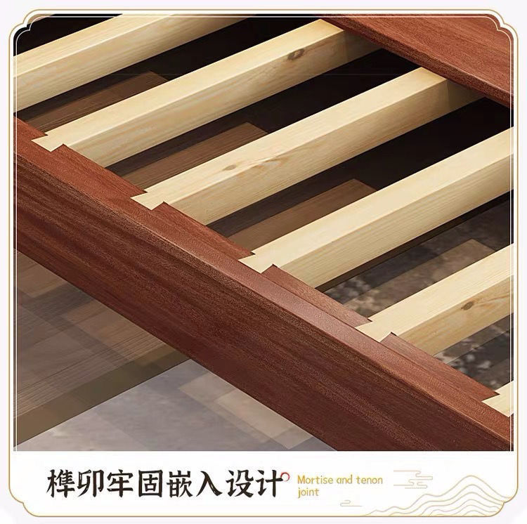 • H6 로즈우드 장붓구멍 및 장부 침대 + 풀 침대 보드 + 라텍스 브라운 매트 + 캐비닛 1개