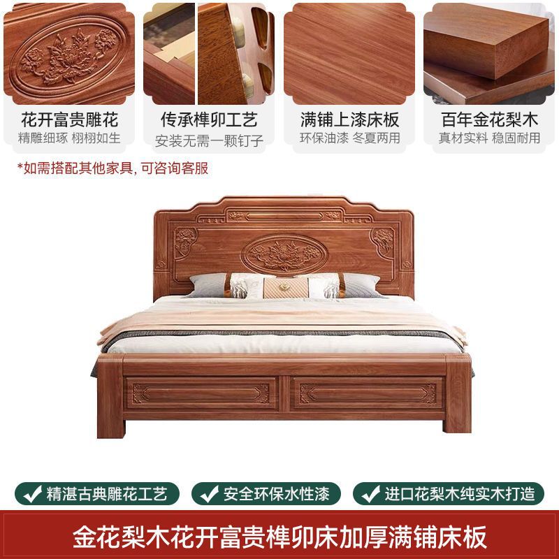 복고풍 원목 침대, 중국식 화리 원목 조각 침대, 1.8m 더블 침대, 심플한 명청 시대 고전 원목 침대스토어 가기