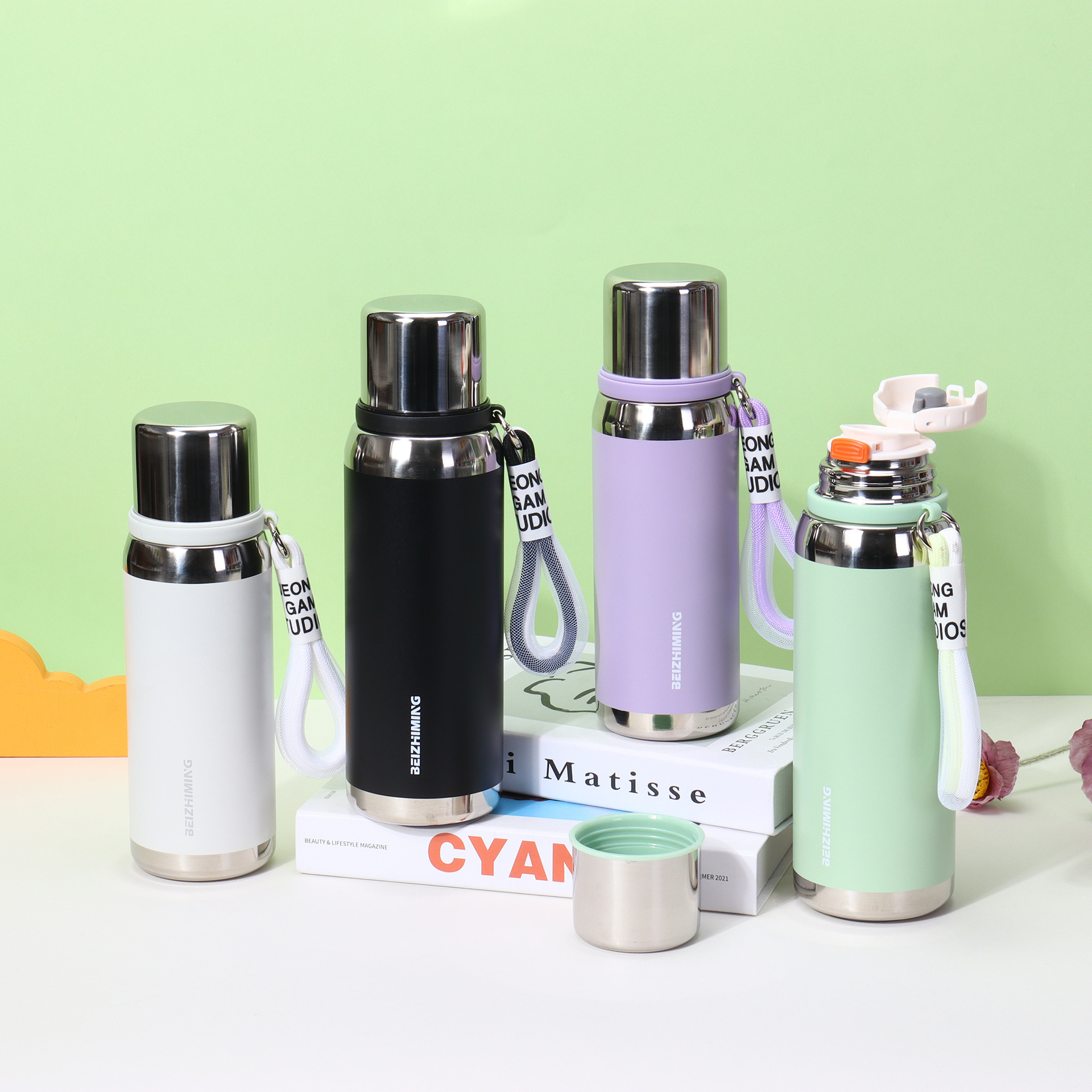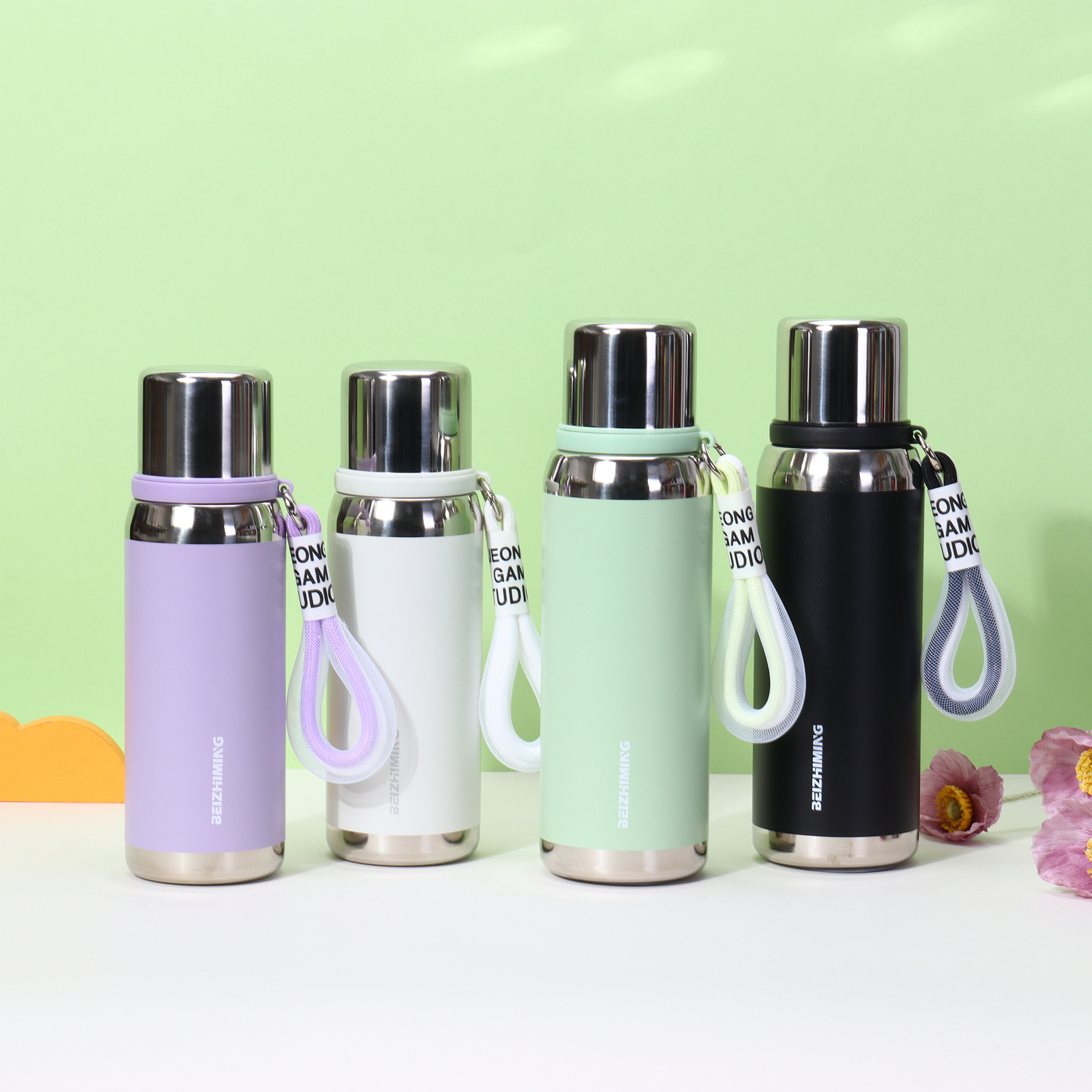 올스틸 진공 대용량 스포츠 워터 컵 남성과 여성을위한 야외 휴대용 더블 레이어 절연 등산 여행 포트 리프팅 로프