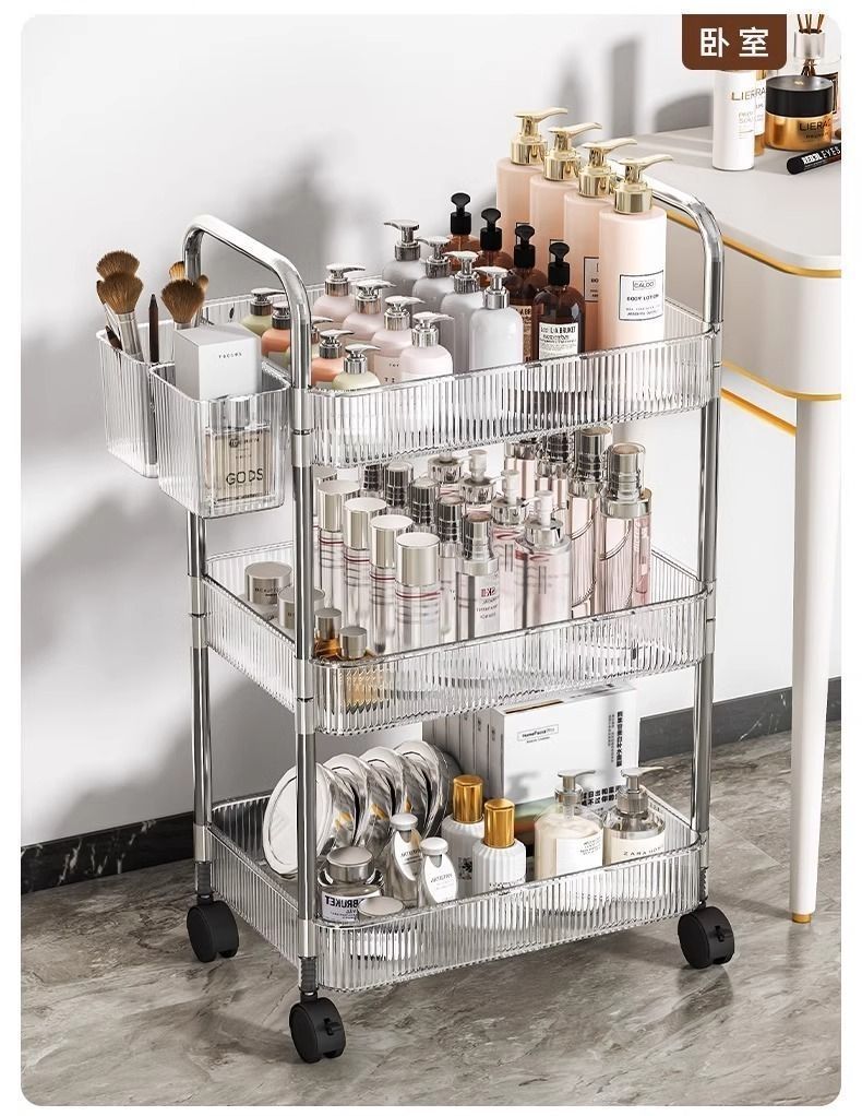 투명한 아크릴 트롤리 보관 랙 욕실 침대 간식 침실 바닥 다층 모바일 화장품 보관스토어 가기