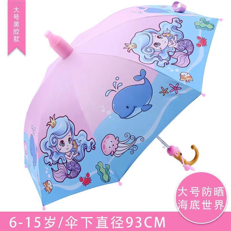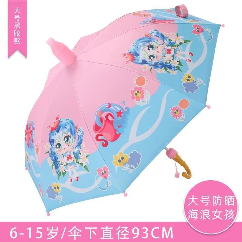 새로운 만화 Syro 자동 초등학교 소년과 소녀 어린이 아기 키즈 햇빛 긴 손잡이 맑은 직선 손잡이 우산