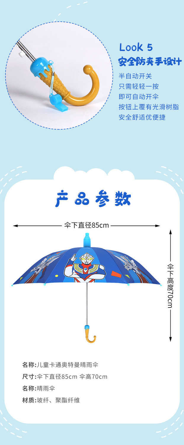 새로운 만화 Syro 자동 초등학교 소년과 소녀 어린이 아기 키즈 햇빛 긴 손잡이 맑은 직선 손잡이 우산스토어 가기