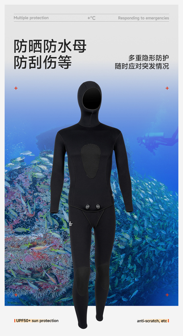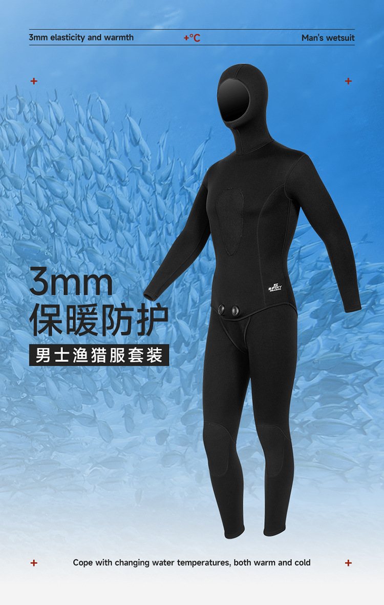 3MM 스플릿 후드 낚시 슈트, 방한 및 따뜻한 잠수복, 프리다이빙 서핑 겨울 수영복, 낚시 및 사냥 슈트