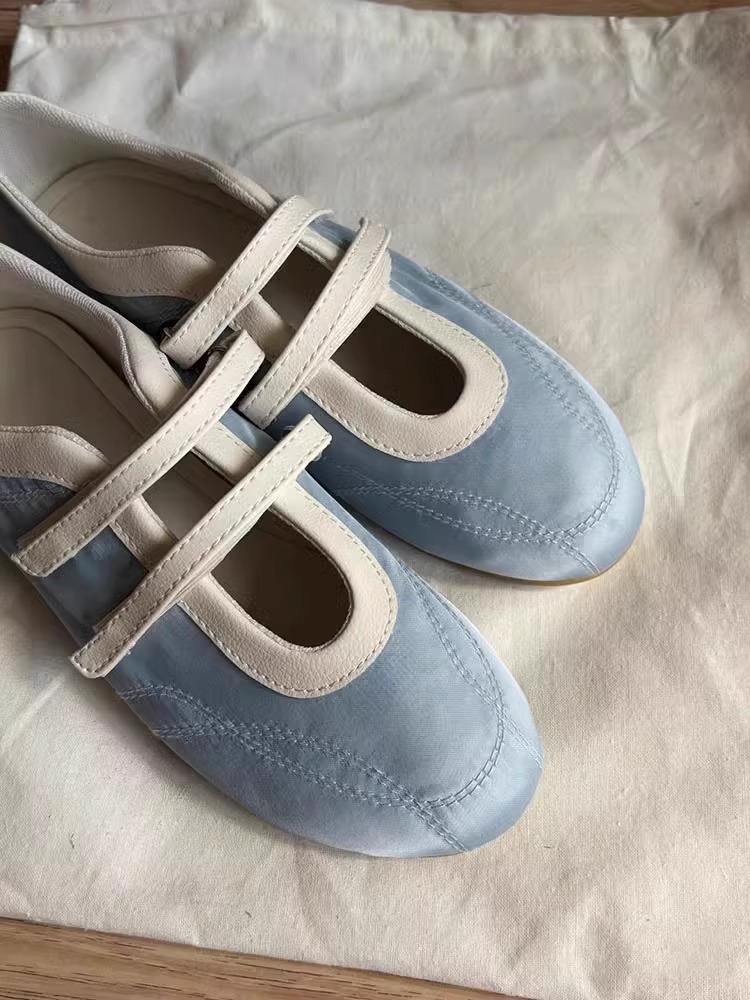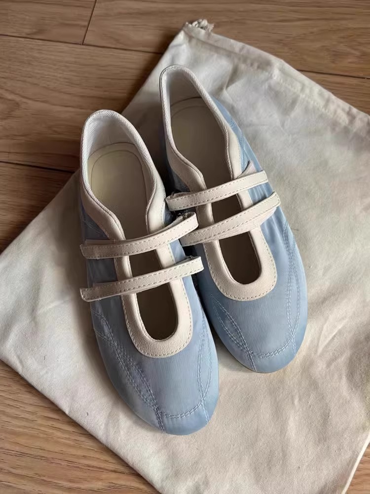 양가죽 버전 ~ 복고풍 둥근 머리 벨크로 플랫 발레 신발 패션 다재다능한 푸른 얕은 입 메리 제인 신발스토어 가기