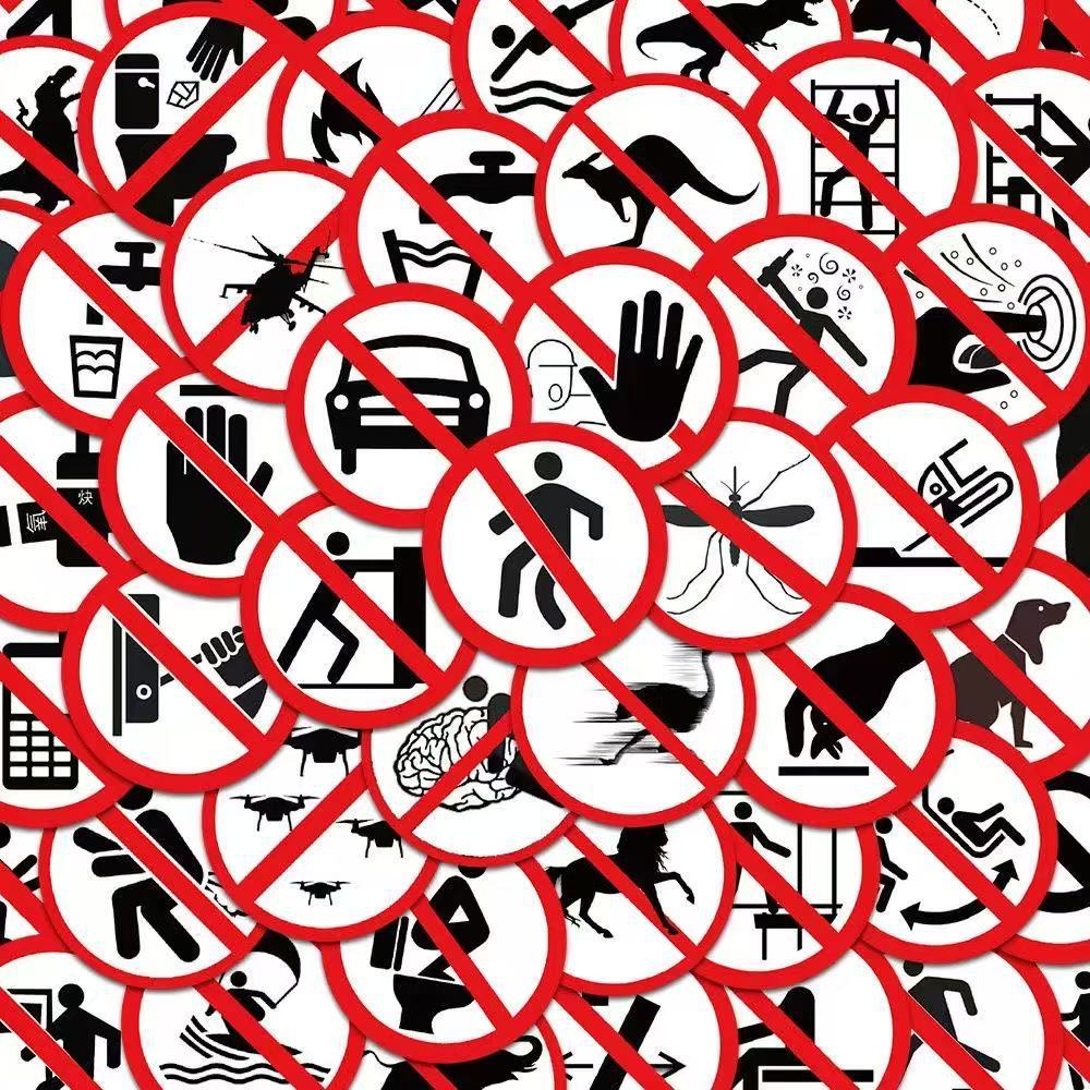 64개의 재미있는 금지 표시 스티커, 창의적인 경고 표시, 핸드북, 휴대폰 및 노트북 장식 스티커