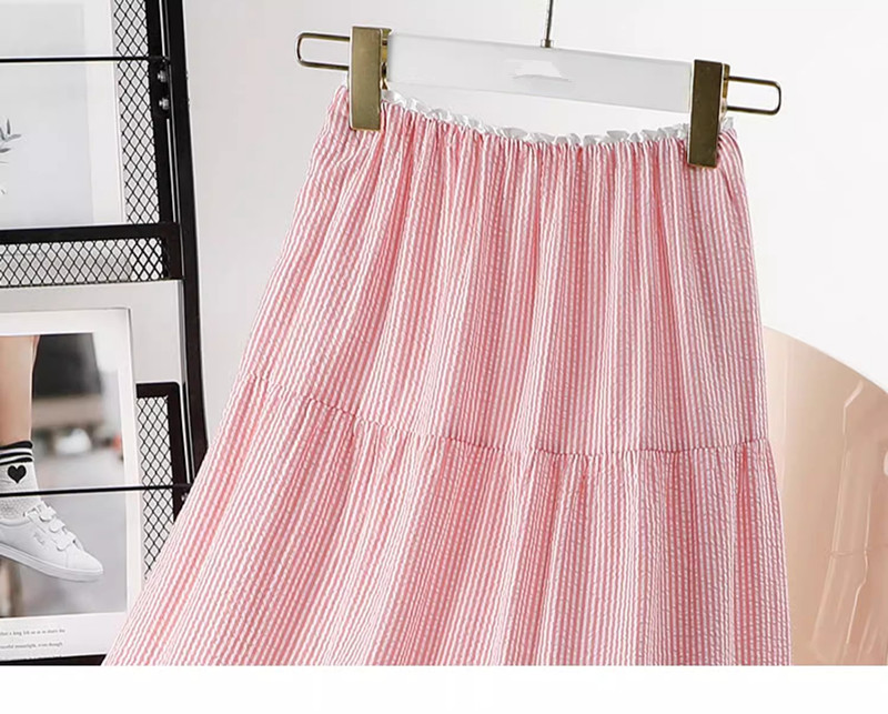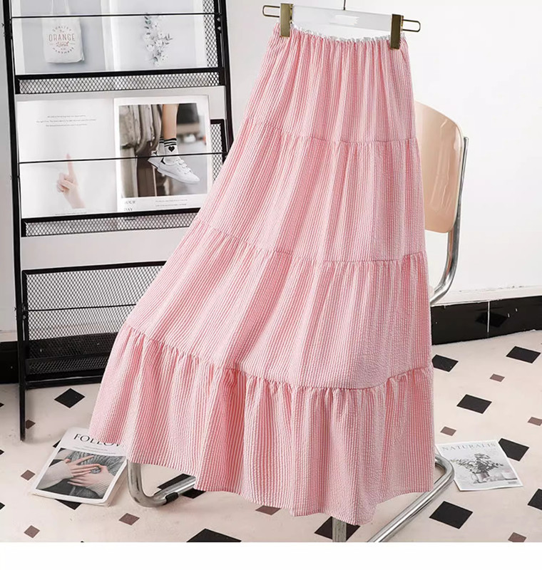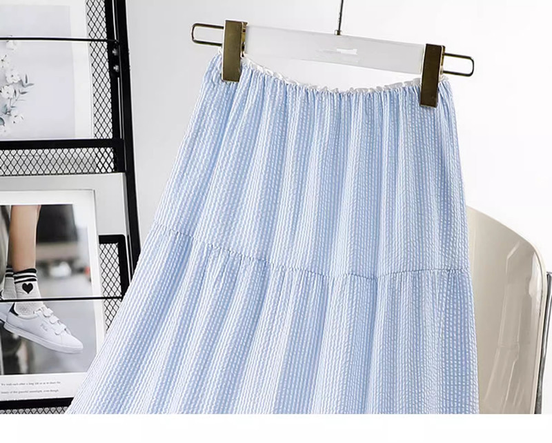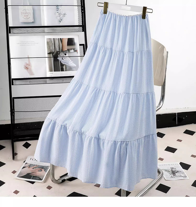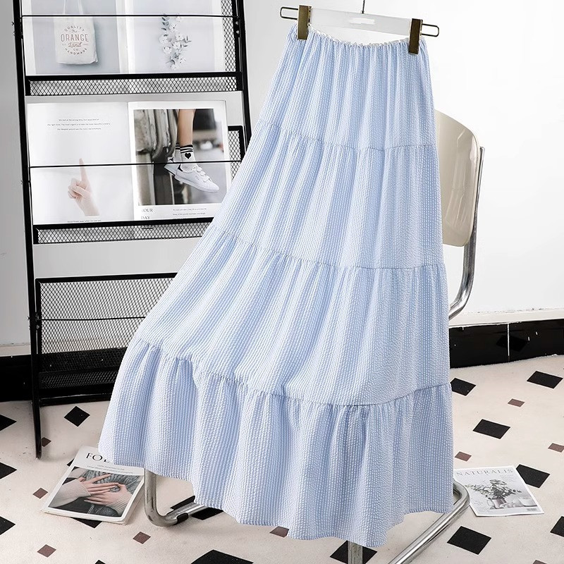 블루 디자인 센스 2025 여름 새로운 절반 길이 치마 중간 길이 헵번 스커트 대학 스타일 어린이를위한 주름 치마스토어 가기