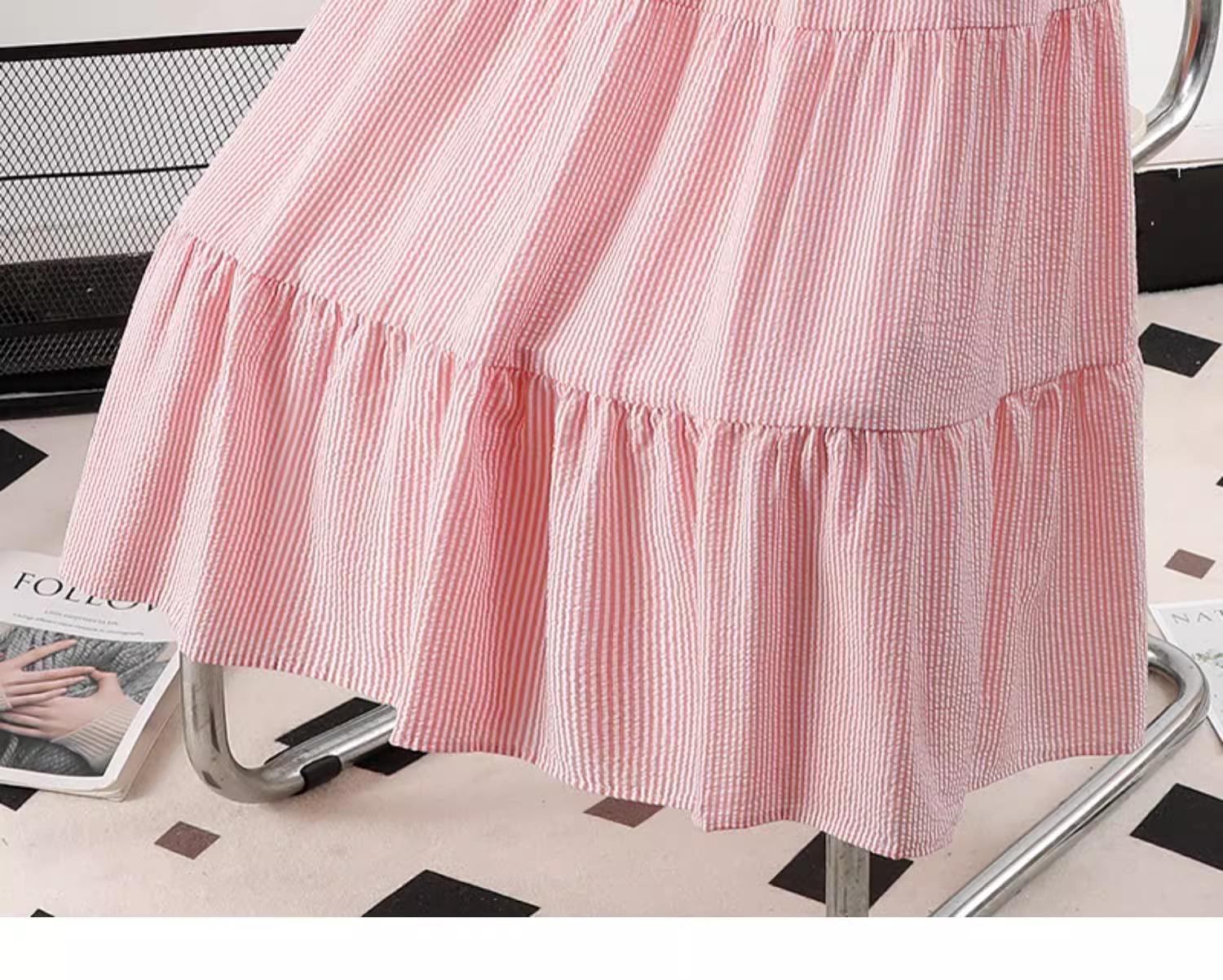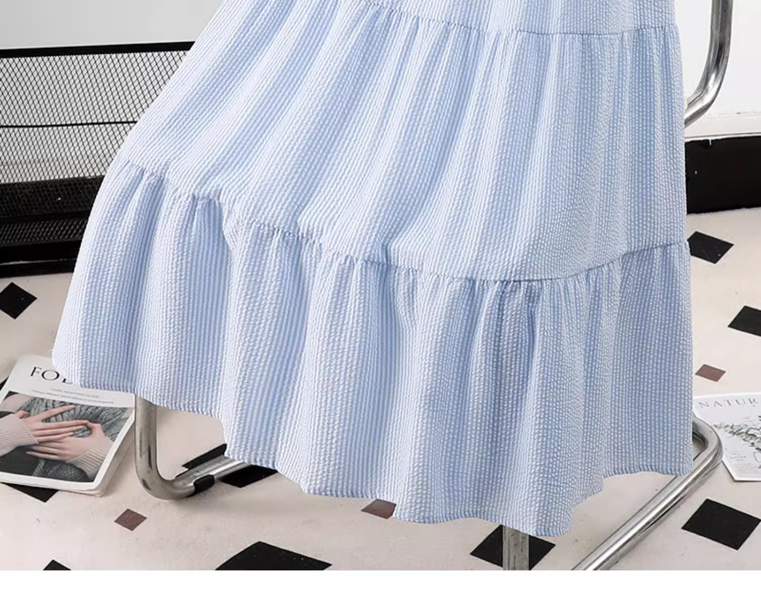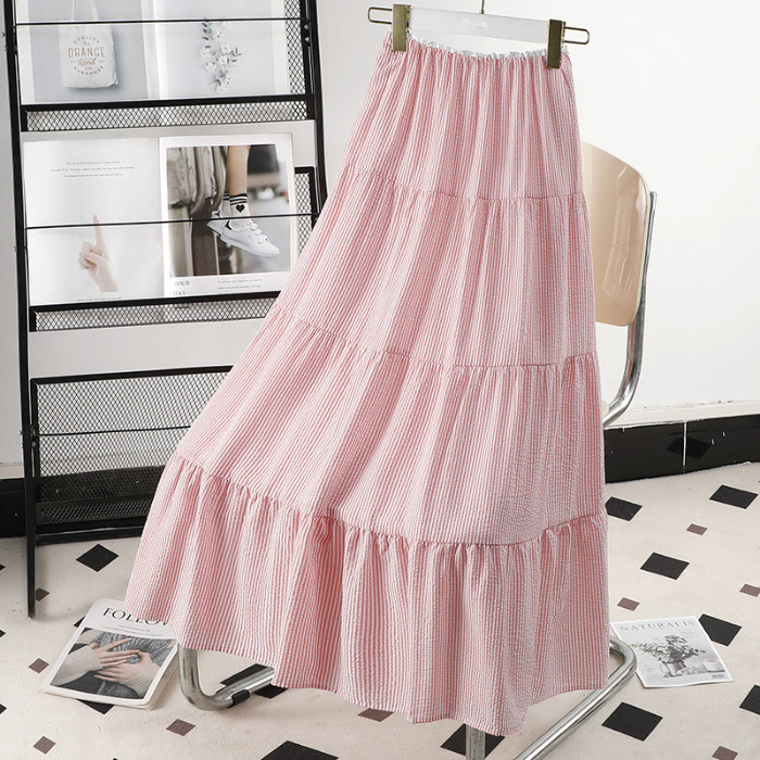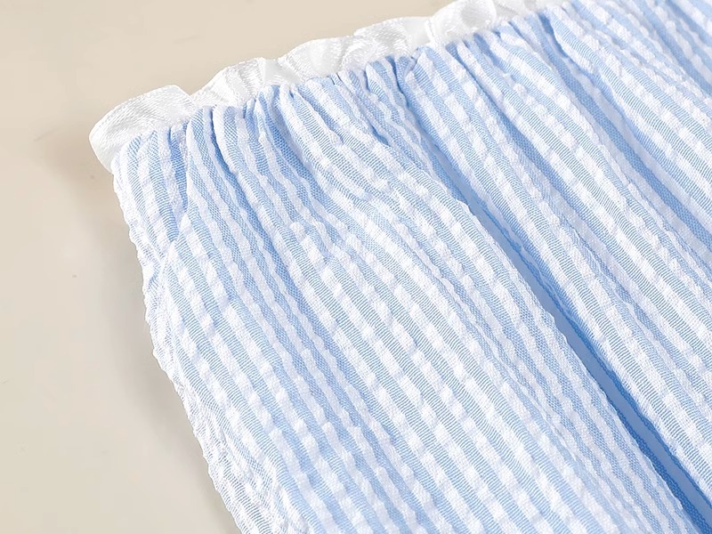 블루 디자인 센스 2025 여름 새로운 절반 길이 치마 중간 길이 헵번 스커트 대학 스타일 어린이를위한 주름 치마스토어 가기