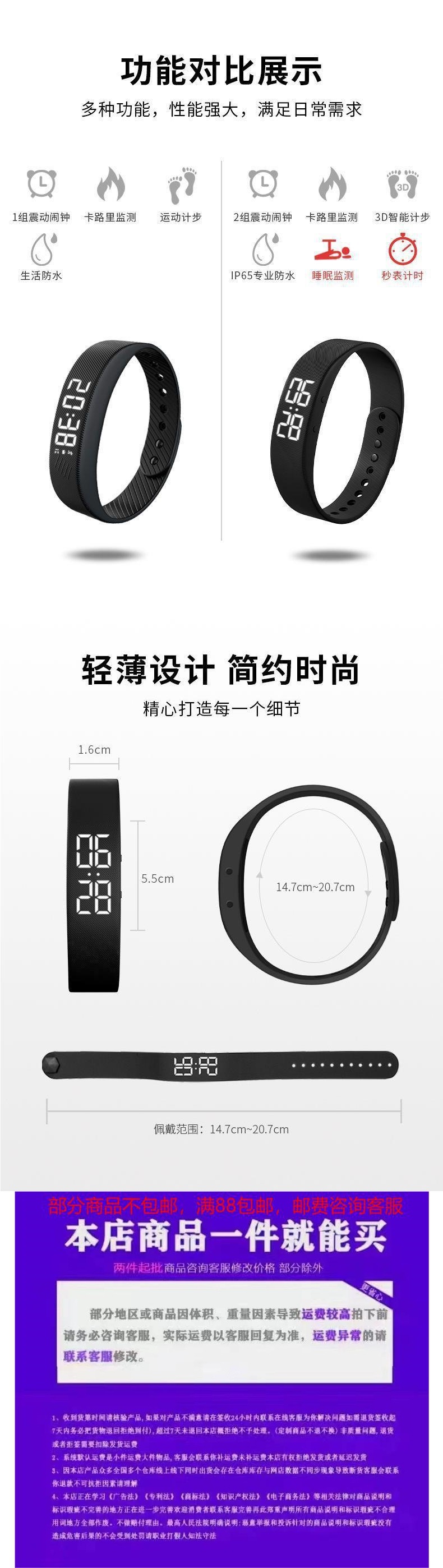 알람 시계 남자 학생 간단한 스포츠 다기능 침묵 진동자 단계 타이밍 중학생 전자 팔찌 시계스토어 가기