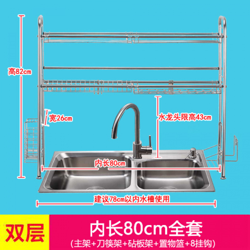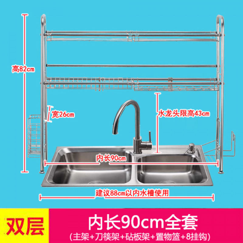 스테인레스 스틸 접시 랙 드레인 랙 다기능 주방 보관 랙 더블 레이어 물 접시 식기 스토브 Yinwei Youni