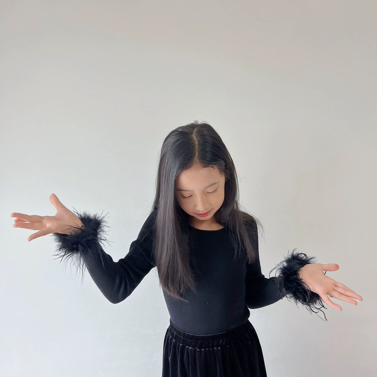 봄과 가을 여성 아동복 티셔츠 아기의 서양식 어린이 성격 유행 한국 스타일 술 모직 슬리브 인터넷 인기 유행베이스 셔츠