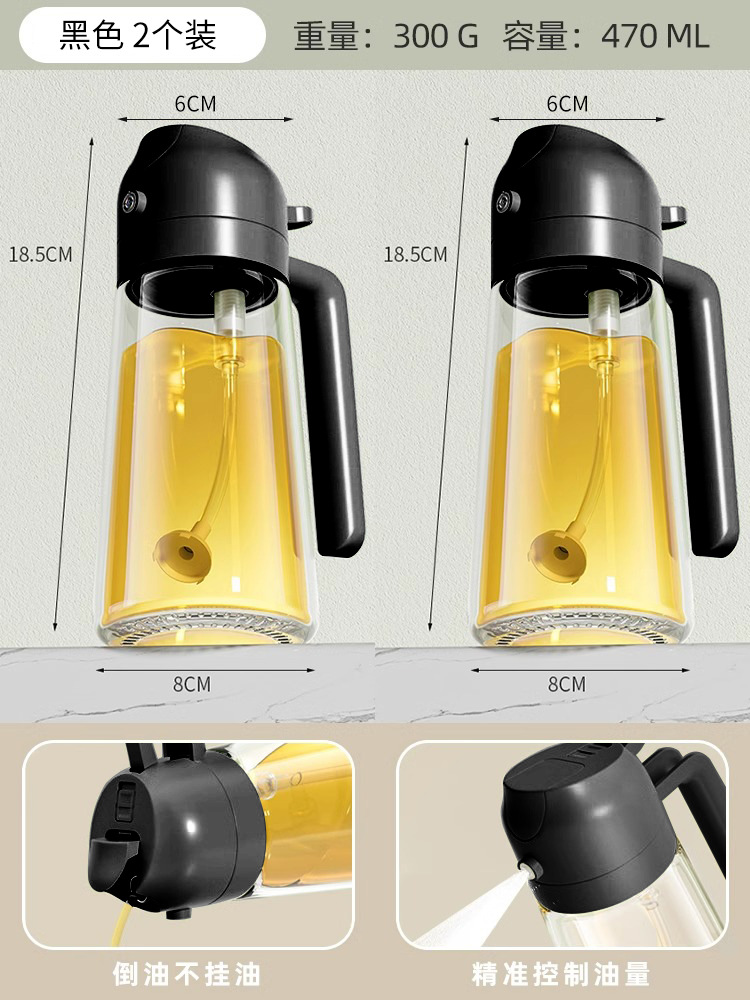 • 업그레이드된 유리 모델⭐블랙 [2팩]✅역주입 일체형 오일병