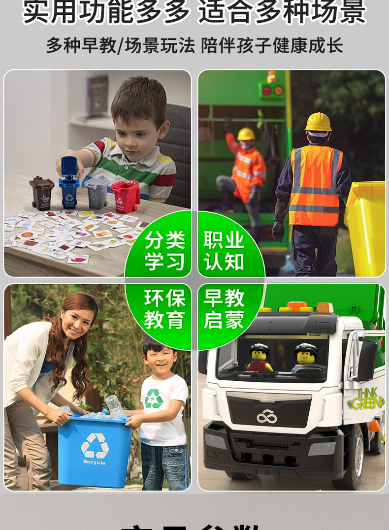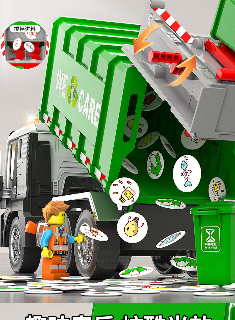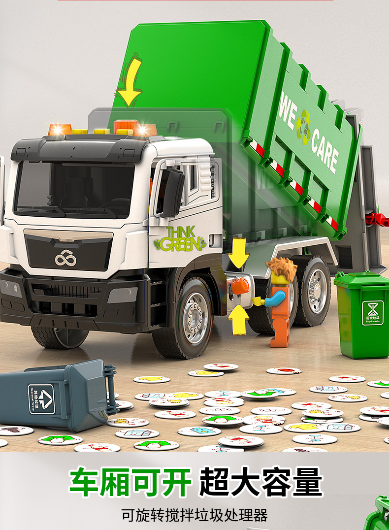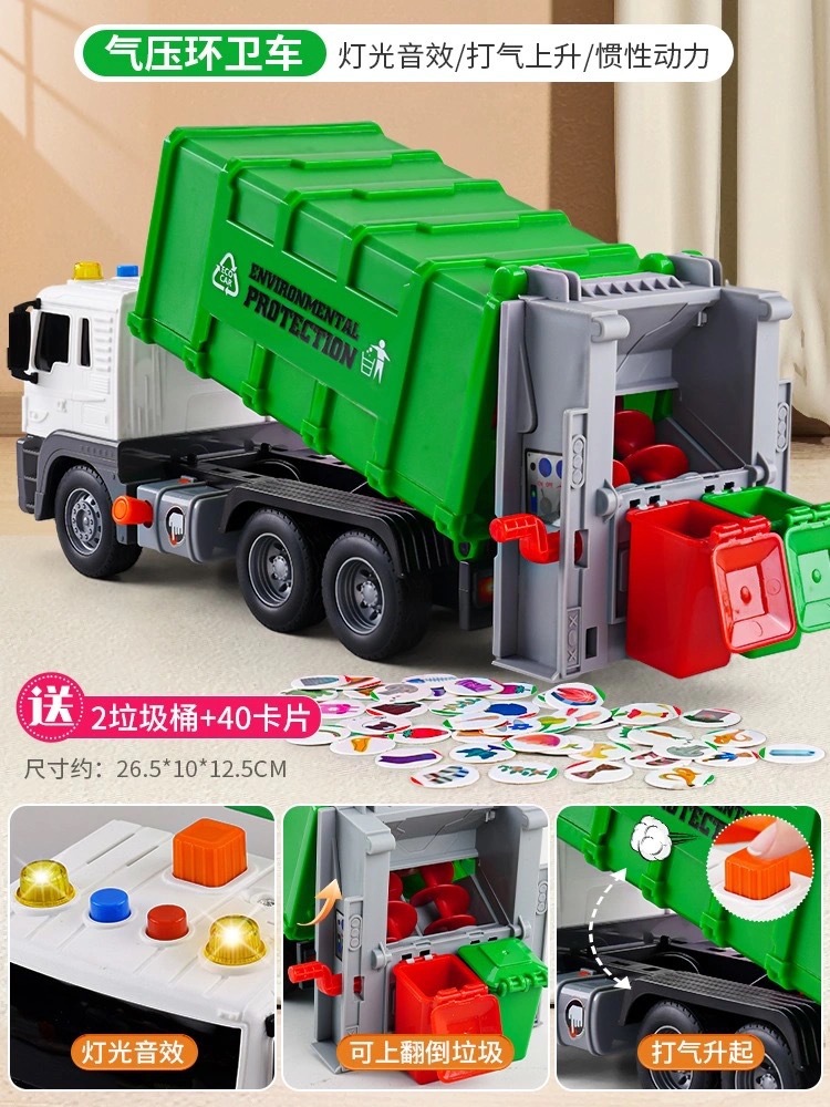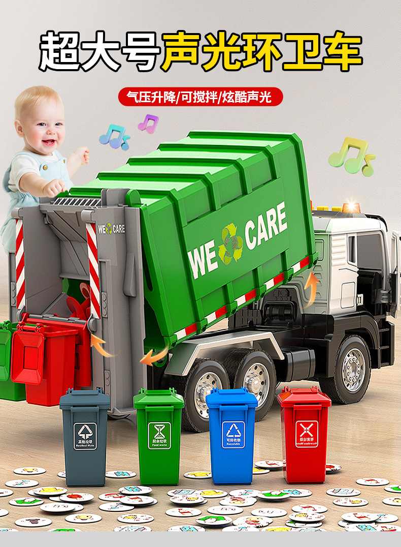시뮬레이션 대형 쓰레기 트럭 어린이 장난감 쓰레기 분류 버킷 위생 공학 모델 자동차 소년 장난감 도매스토어 가기