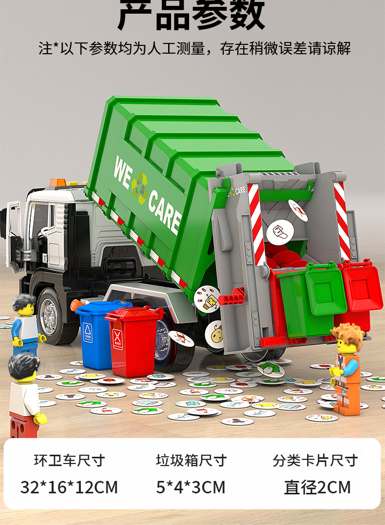 시뮬레이션 대형 쓰레기 트럭 어린이 장난감 쓰레기 분류 버킷 위생 공학 모델 자동차 소년 장난감 도매