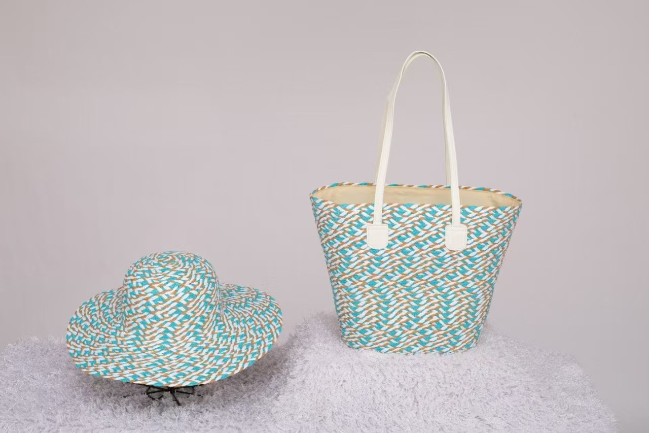 새로운 대외 무역 국경 대용량 토트 백 컬러 밀짚 백 세트 간단한 여성 해변 여행 패션 여성 가방