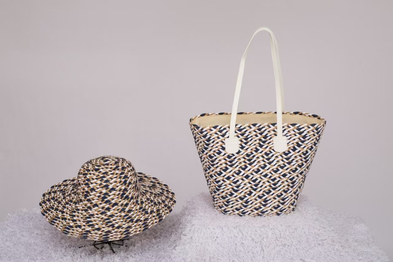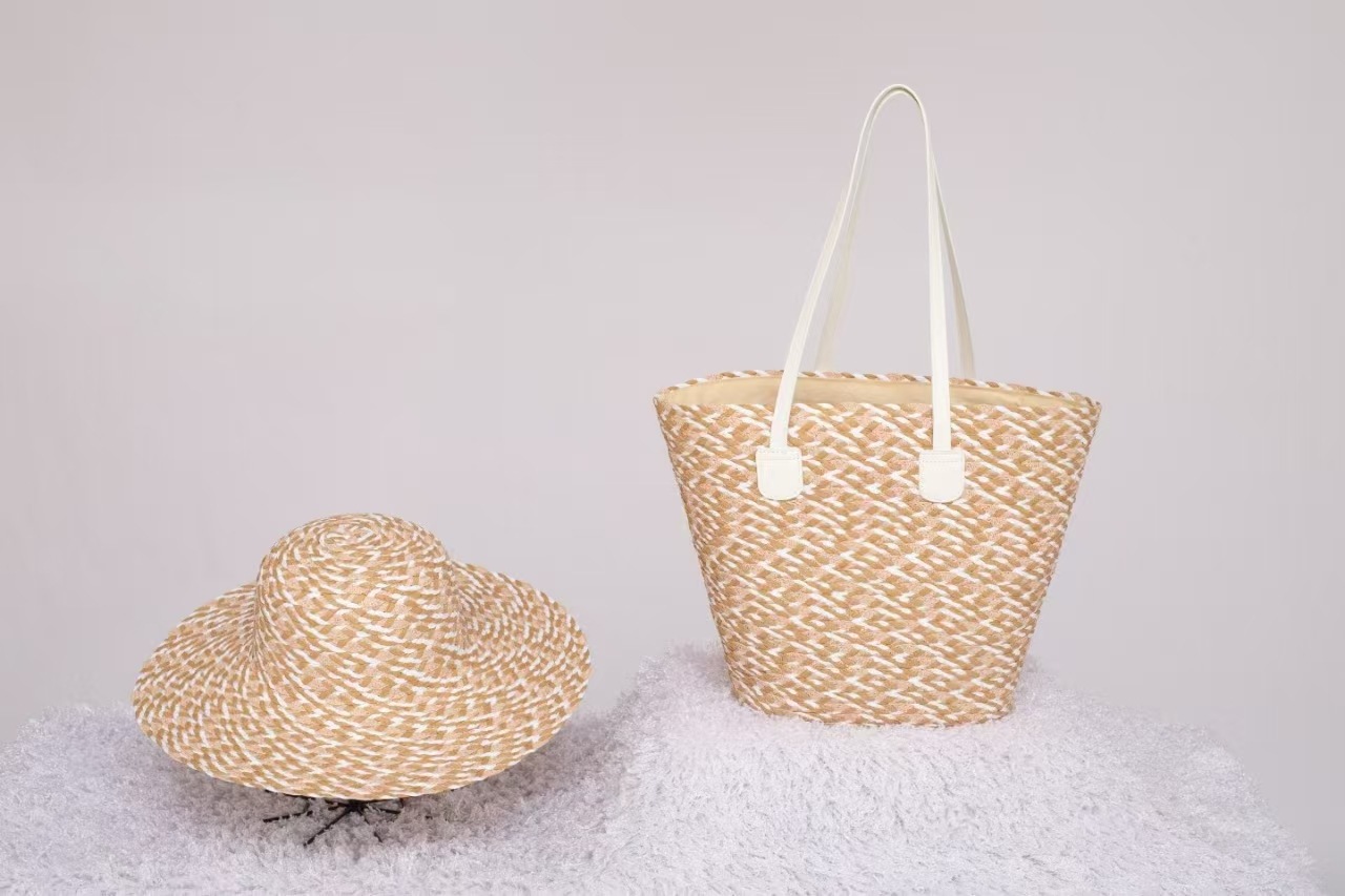 새로운 대외 무역 국경 대용량 토트 백 컬러 밀짚 백 세트 간단한 여성 해변 여행 패션 여성 가방스토어 가기