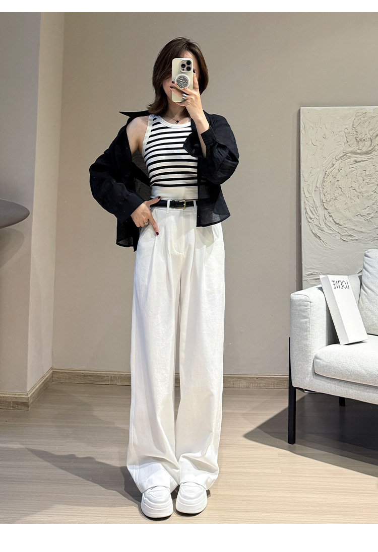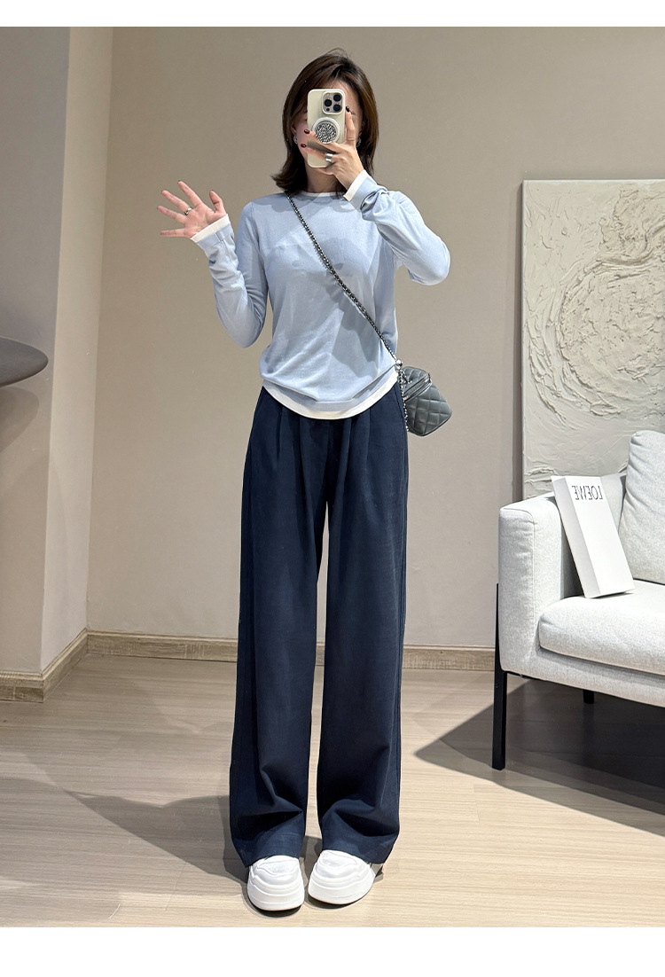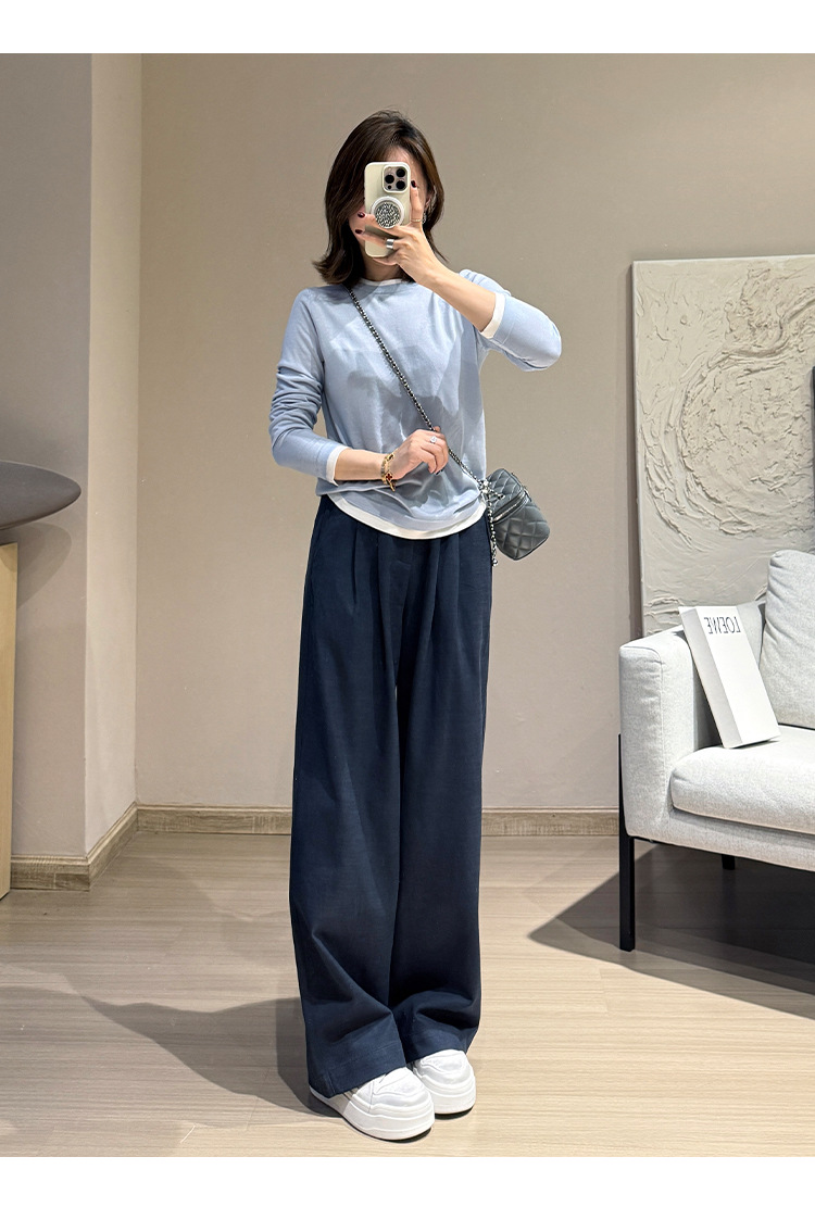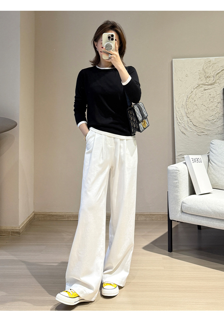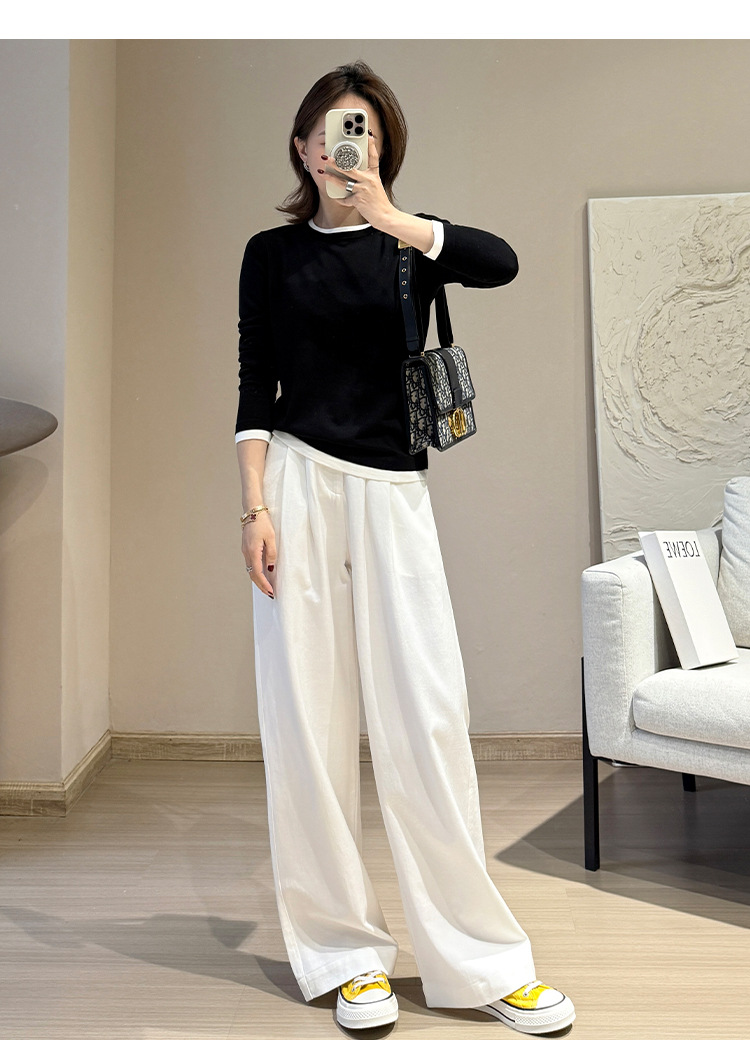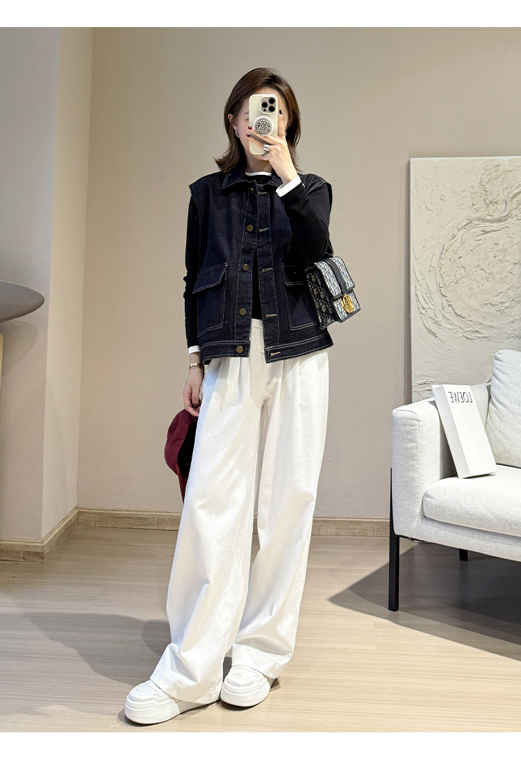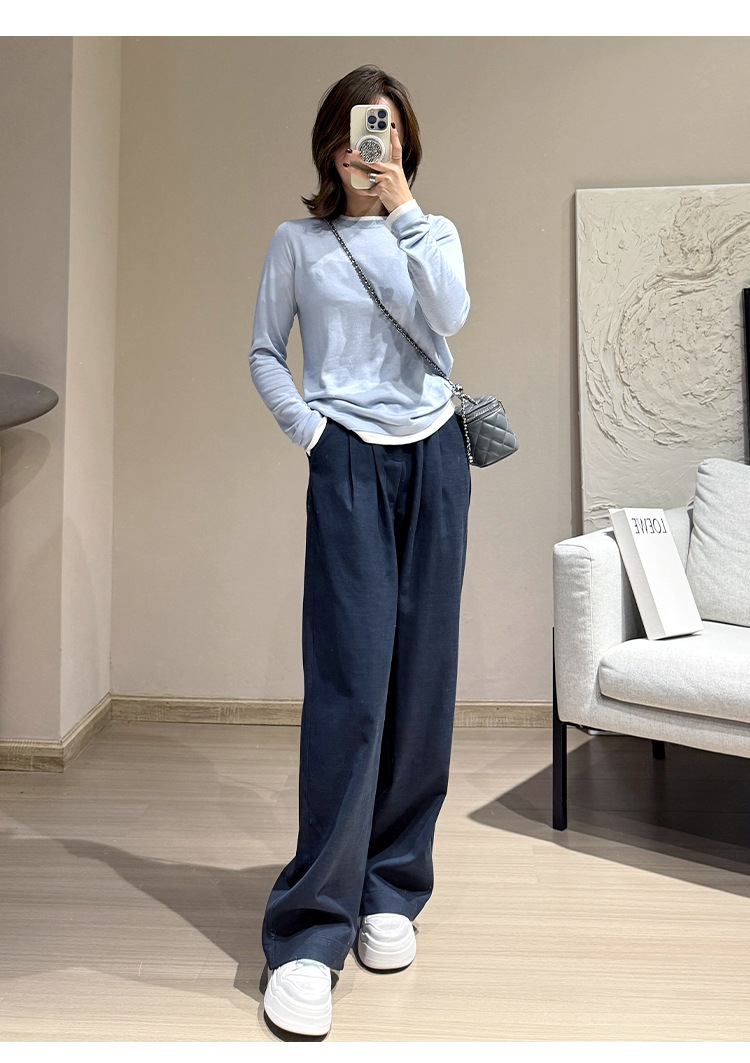 5.老钱风松弛阔腿 版型也chao级显瘦! 高腰设计拉长腿部比例,
