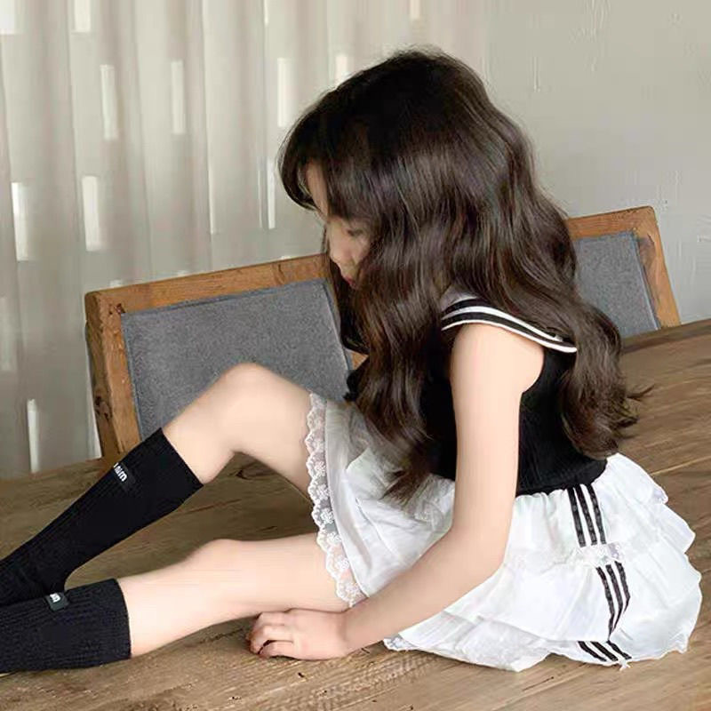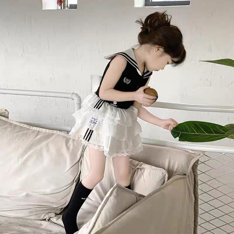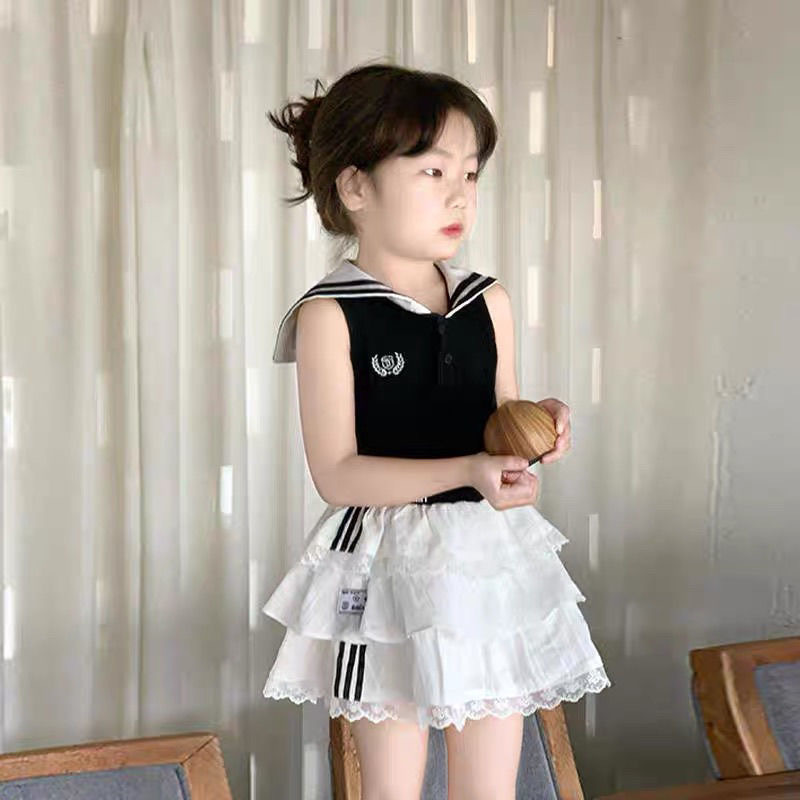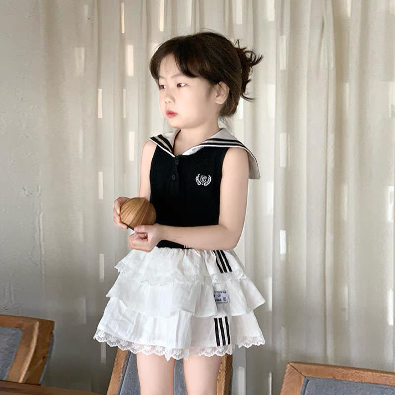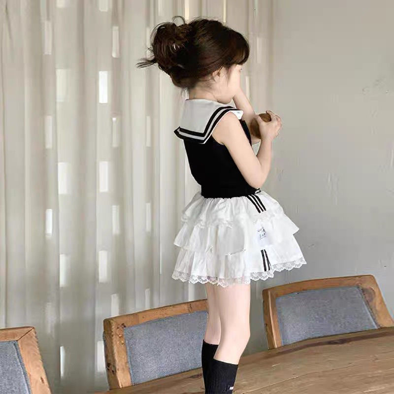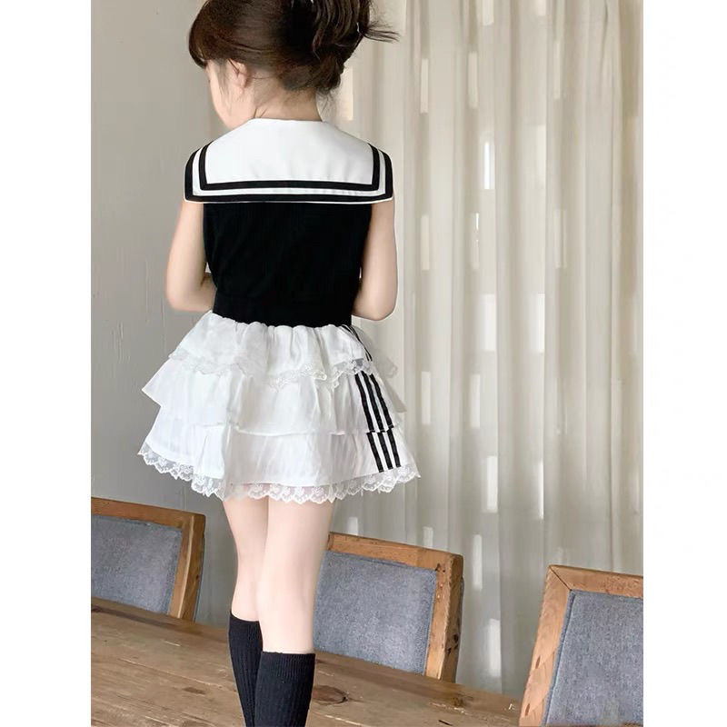 소녀 여름 세트 2025 여름 새로운 서양식 네이비 칼라 탑 아기의 서양식 케이크 스커트 투피스 유행 세트