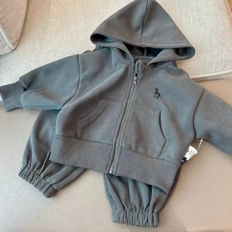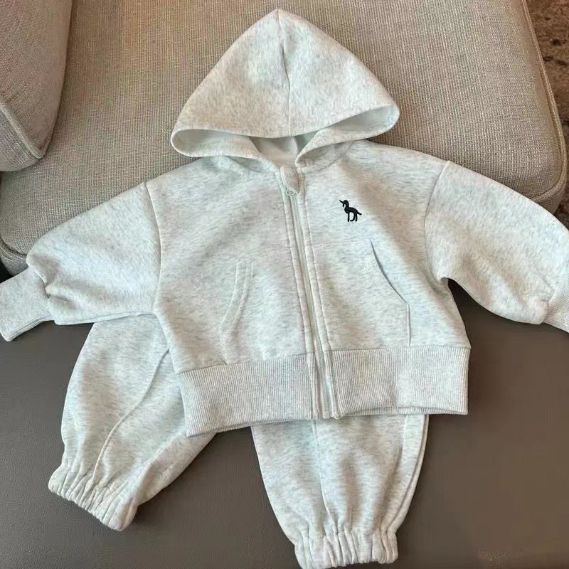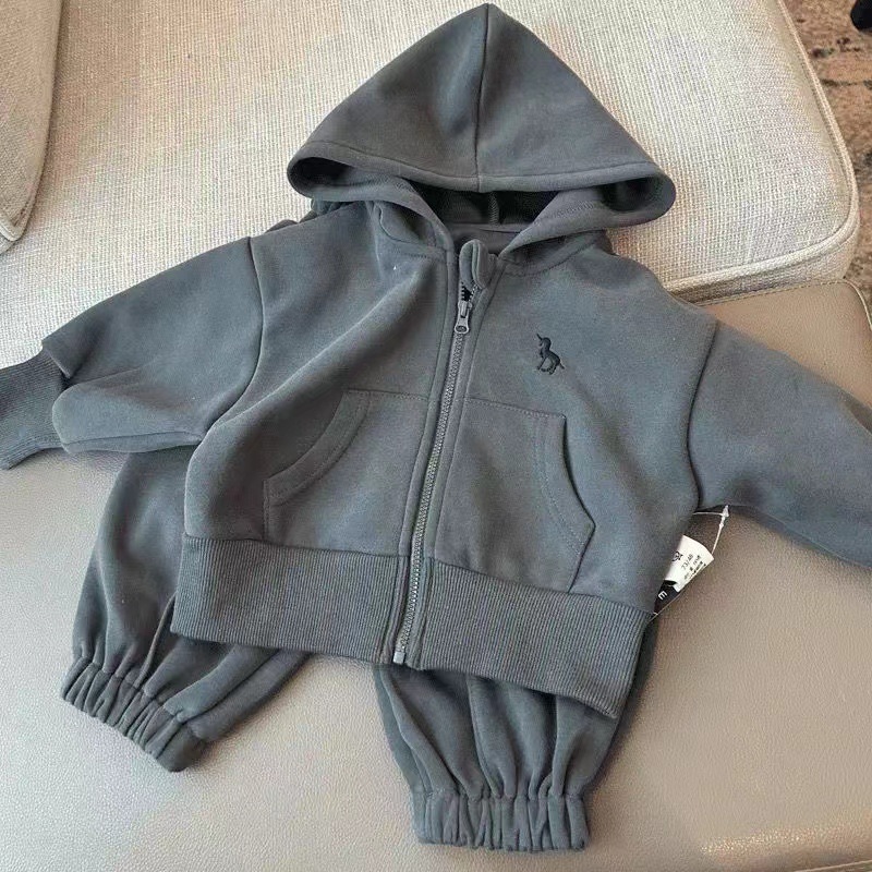 어린이 스웨터 세트 2025 가을 아기 작고 중년 어린이의 간단한 외국 스타일 재킷 바지 후드 투피스 세트 조수스토어 가기