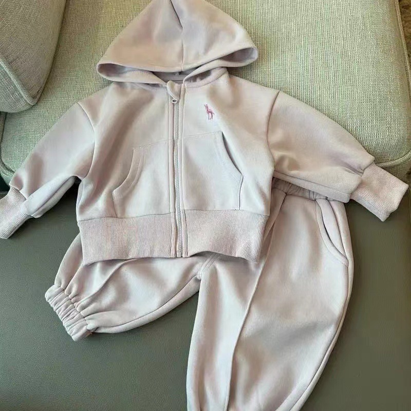 어린이 스웨터 세트 2025 가을 아기 작고 중년 어린이의 간단한 외국 스타일 재킷 바지 후드 투피스 세트 조수