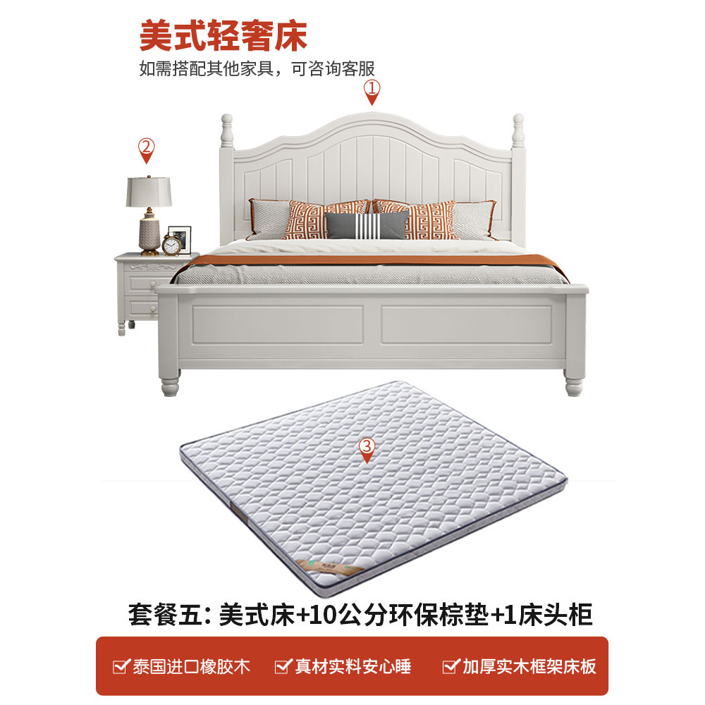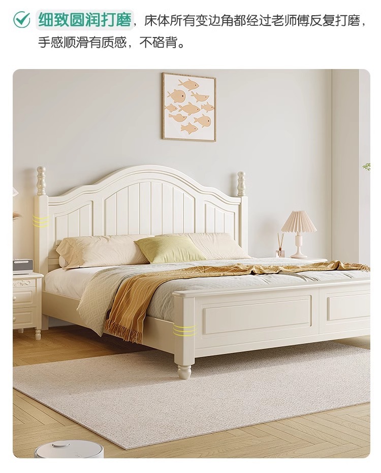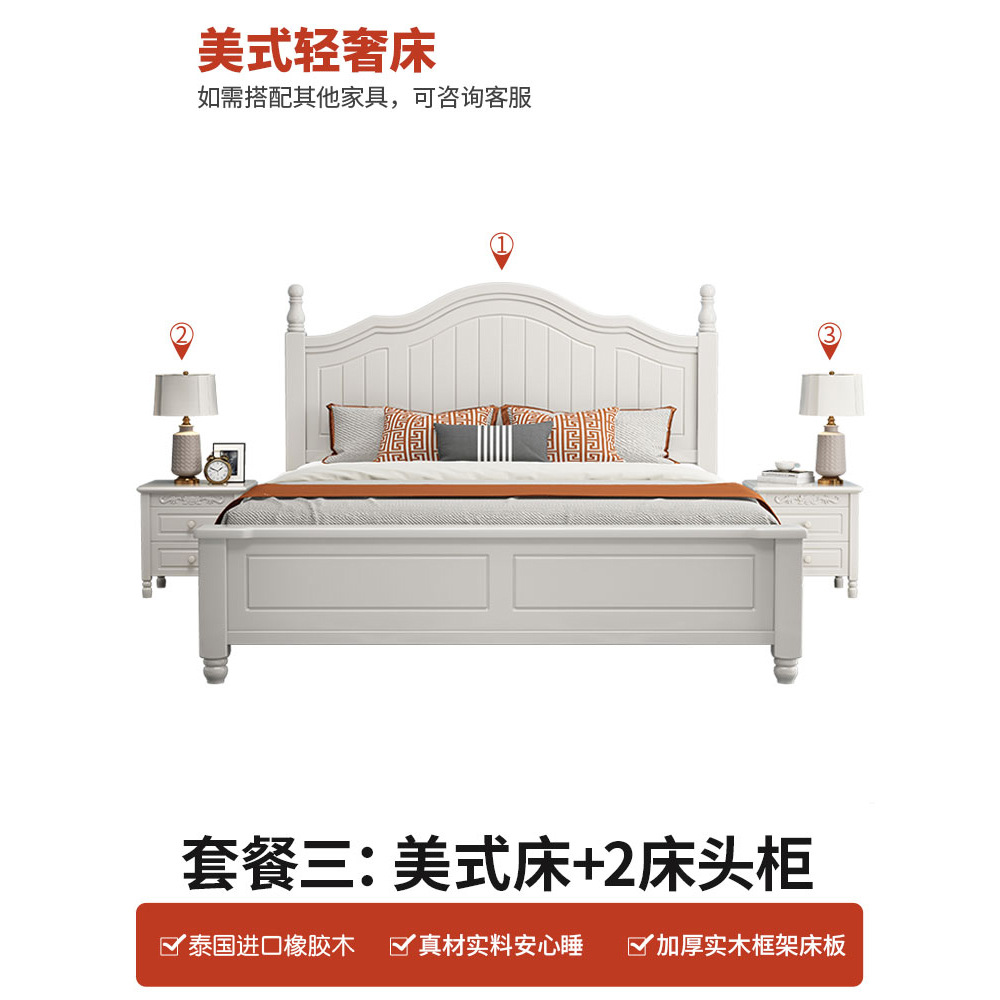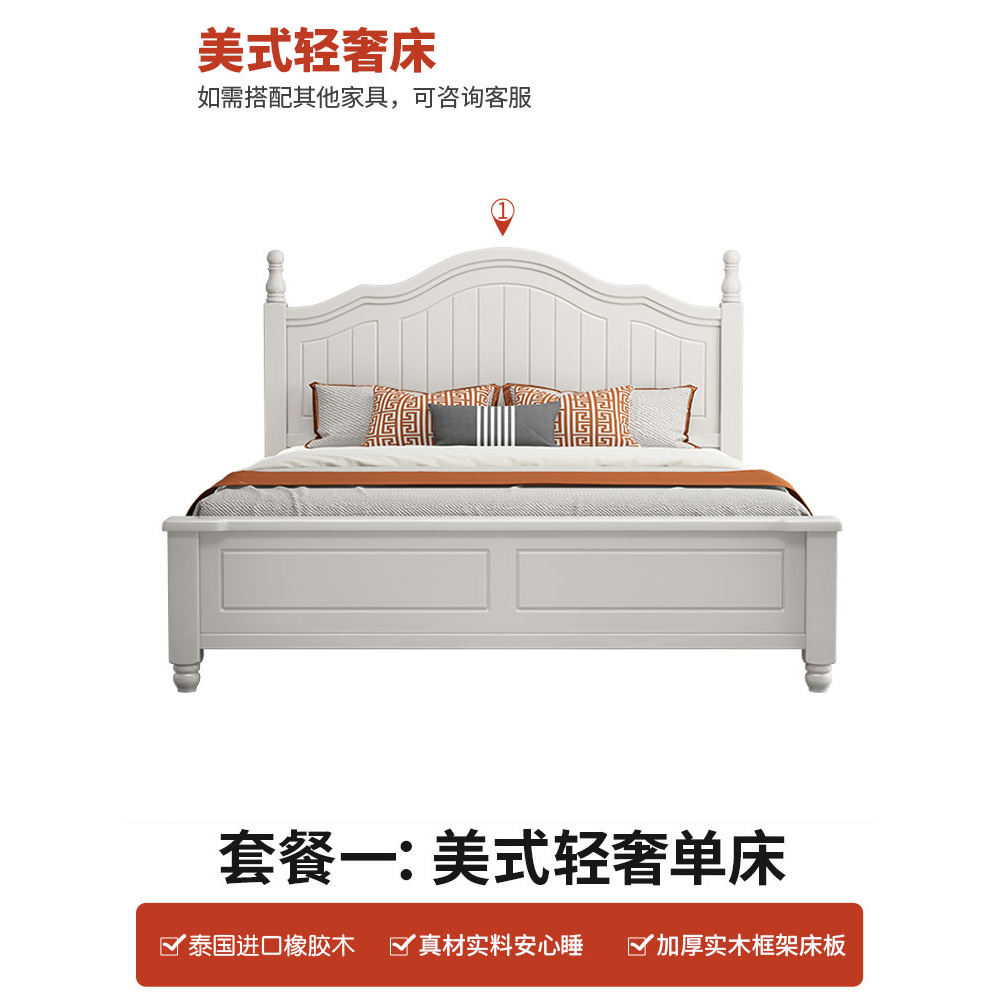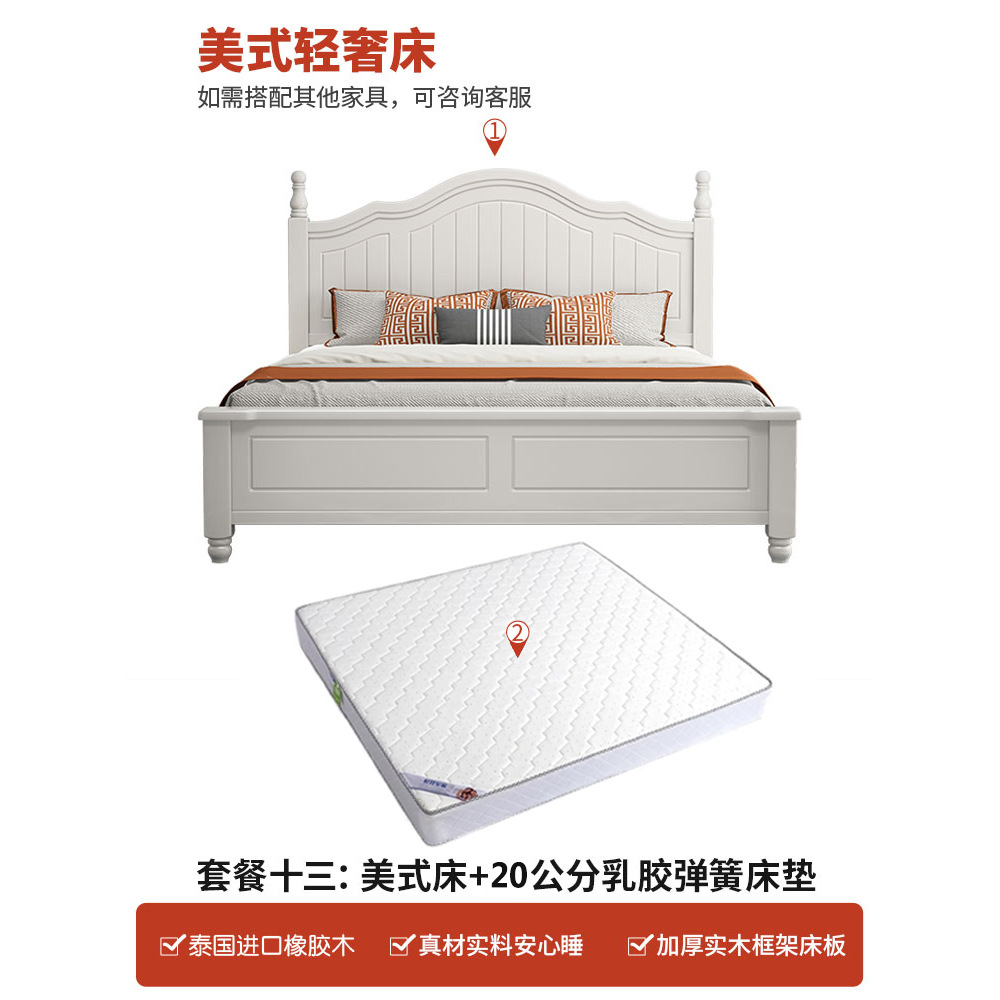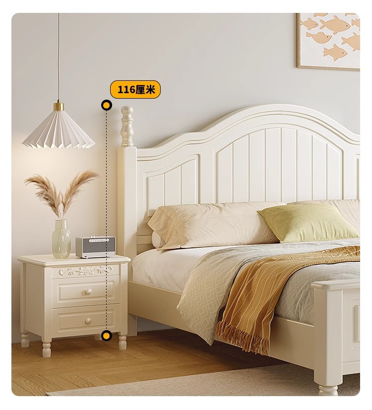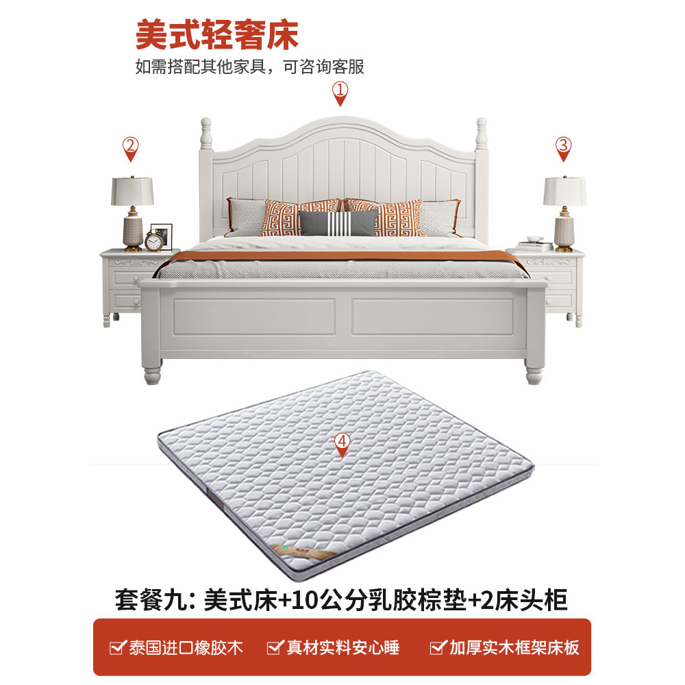 화이트 크림 스타일 전체 단단한 나무 더블 침대 마스터 침실 미국식 심플 모던 1.8m 프랑스 목가적 경제적 웨딩 침대