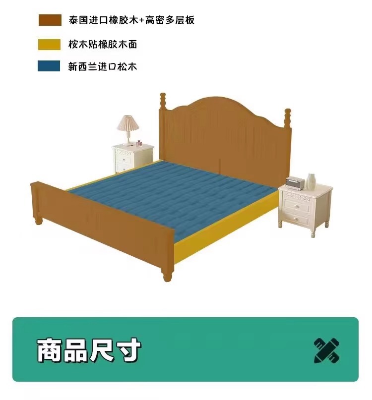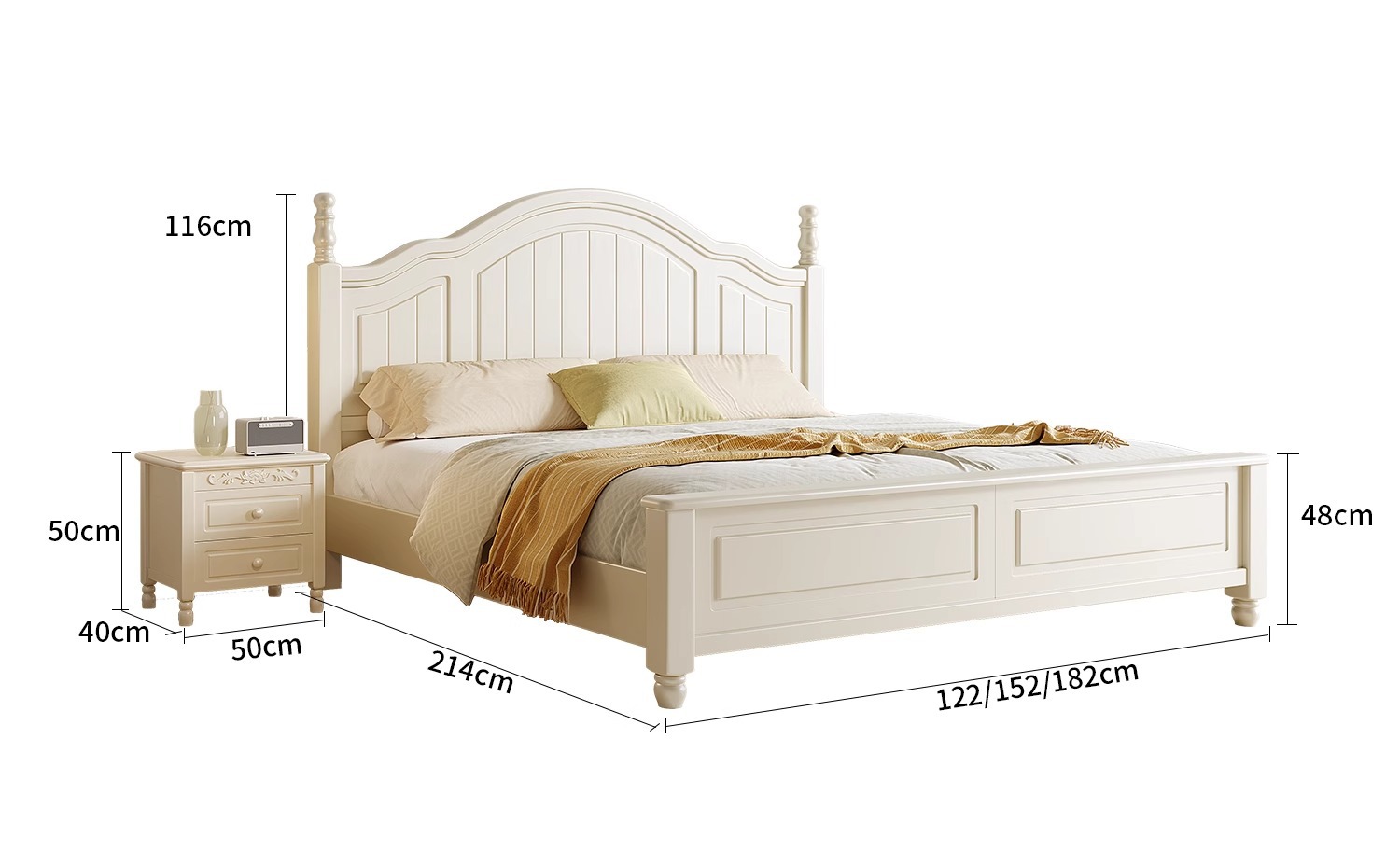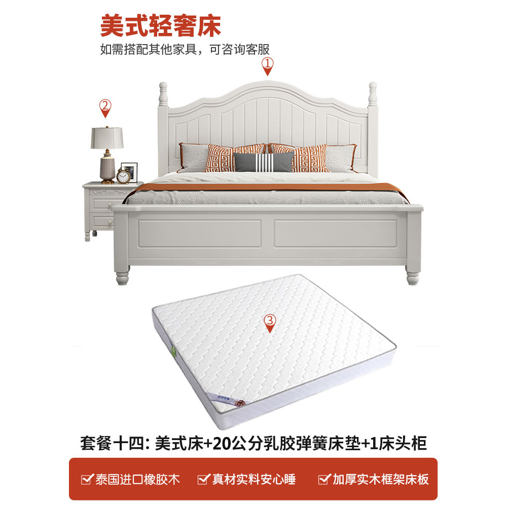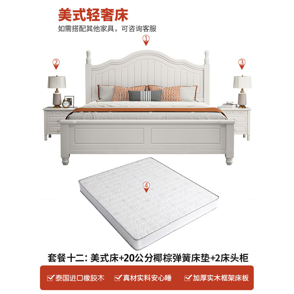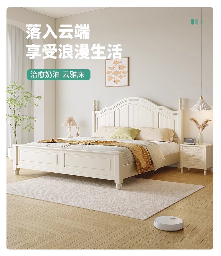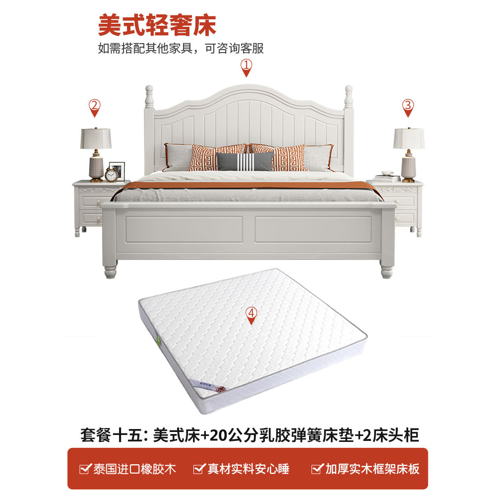 화이트 크림 스타일 전체 단단한 나무 더블 침대 마스터 침실 미국식 심플 모던 1.8m 프랑스 목가적 경제적 웨딩 침대