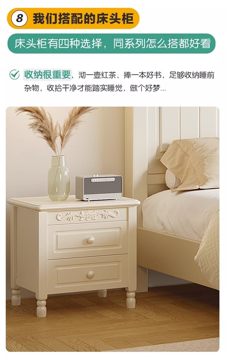 화이트 크림 스타일 전체 단단한 나무 더블 침대 마스터 침실 미국식 심플 모던 1.8m 프랑스 목가적 경제적 웨딩 침대스토어 가기
