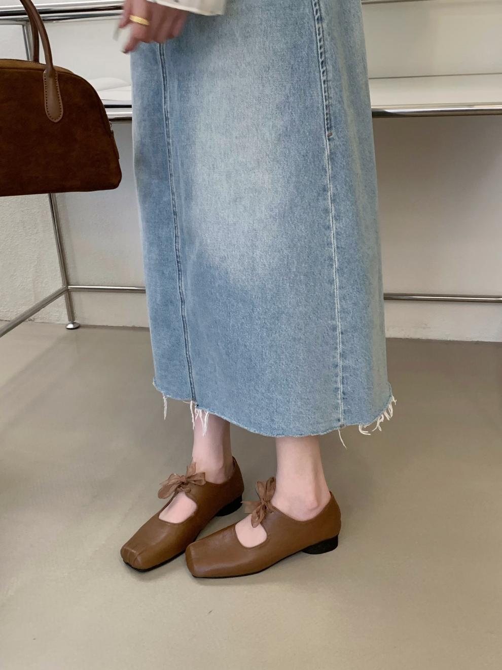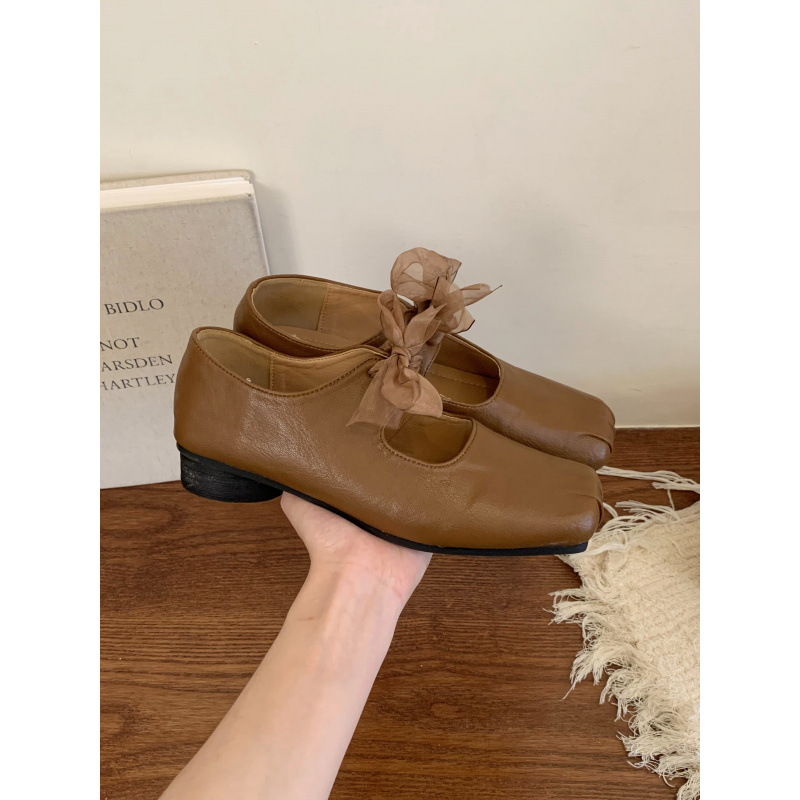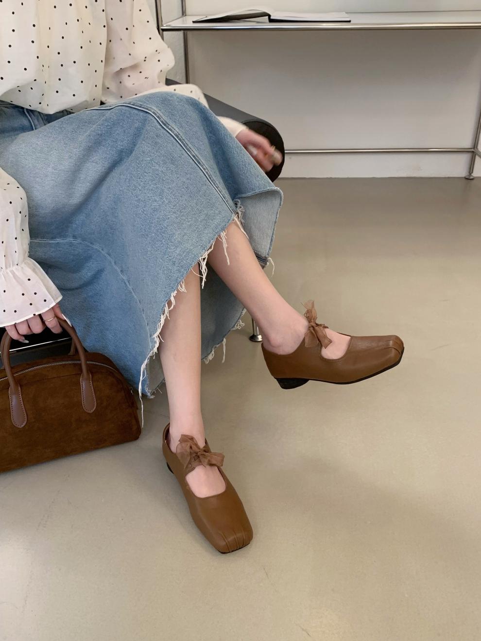 NES 소금 달콤한 청키 힐 싱글 2025 봄과 가을 실크 스트랩 스퀘어 토 싱글 레이어 신발스토어 가기