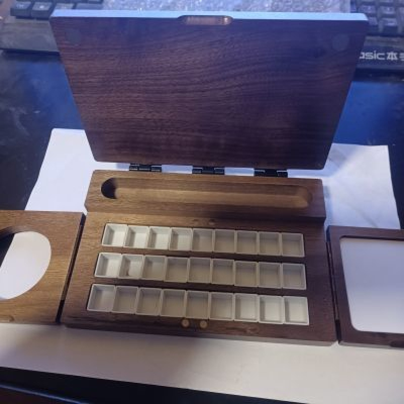 黑胡桃整木整板水彩盒,便携式艺术可水洗,旅行,写生
