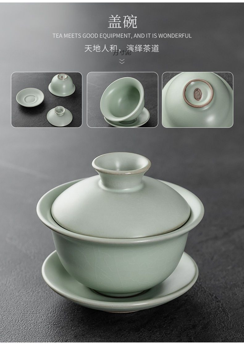 Ru Kiln 커버 보울 필터 차 바다 쿵푸 차 세트 오픈 조각 얼음 균열 스카이 블루 시카이 차 준비 중국 가정용 차 메이커스토어 가기