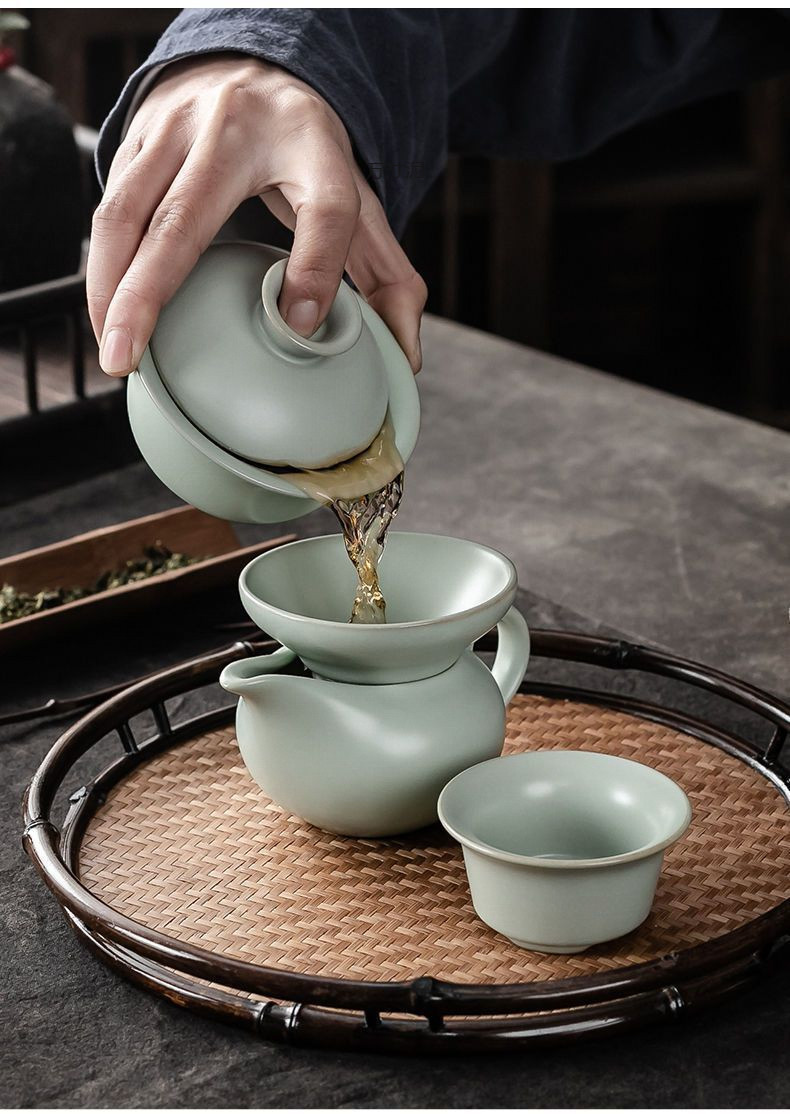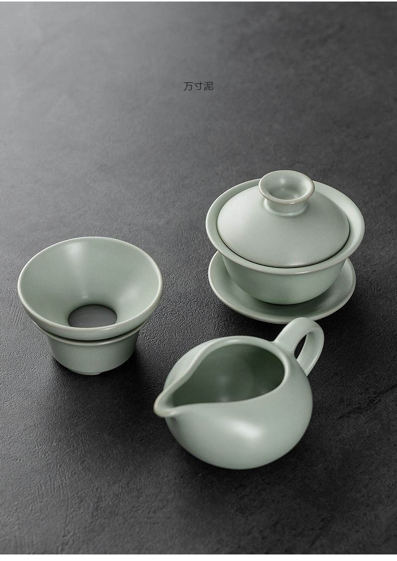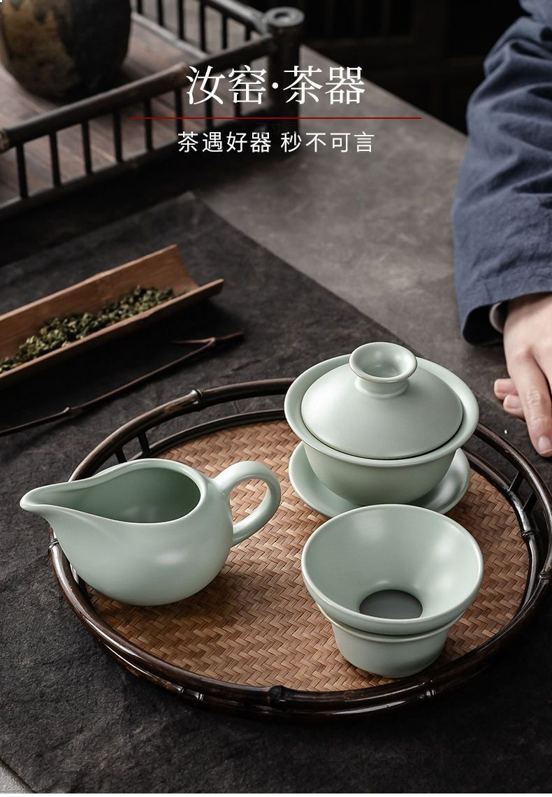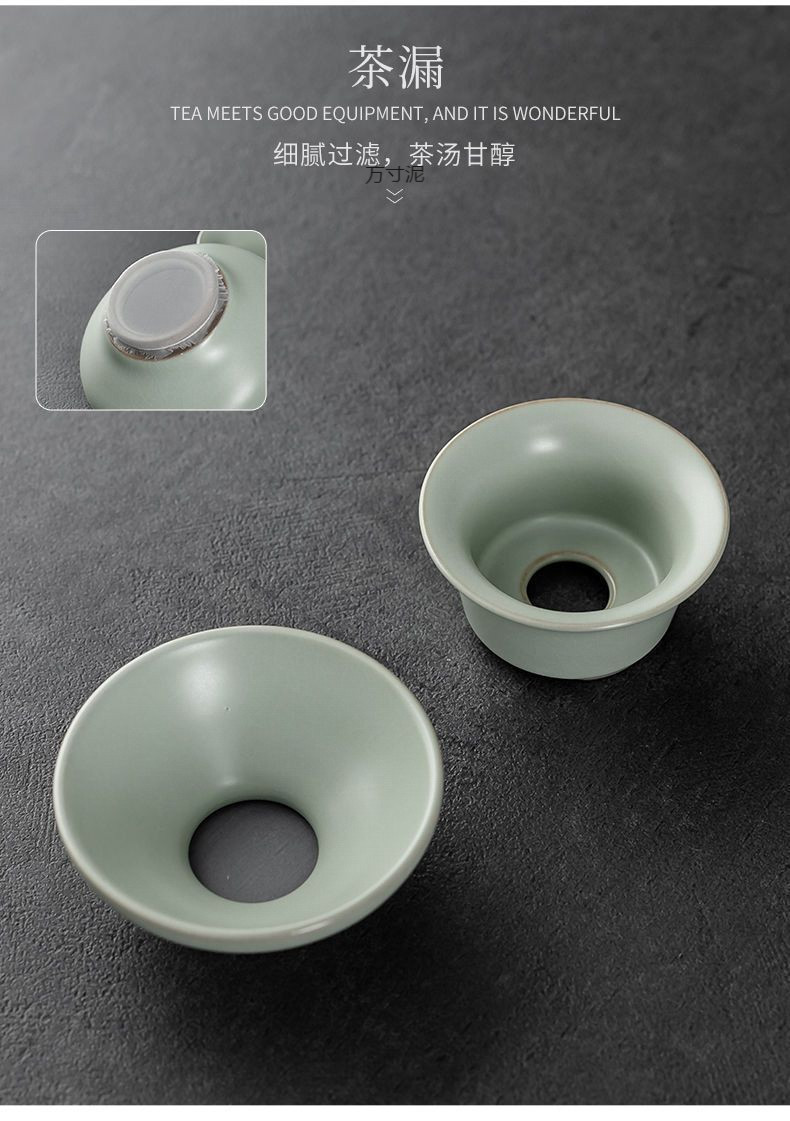 Ru Kiln 커버 보울 필터 차 바다 쿵푸 차 세트 오픈 조각 얼음 균열 스카이 블루 시카이 차 준비 중국 가정용 차 메이커