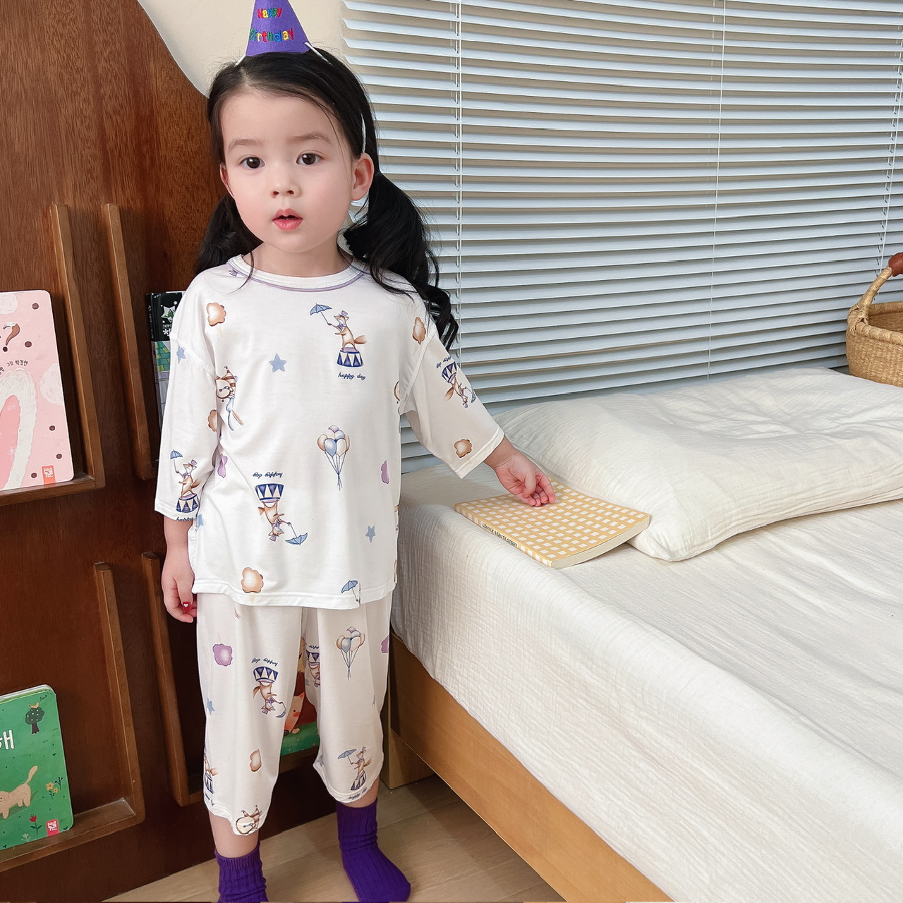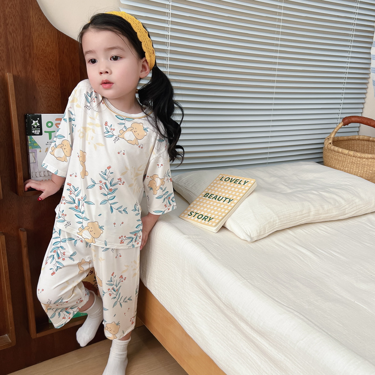 소녀의 잠옷 여름 얇은 소녀의 여름 통기성 에어컨 옷 어린이 세트 공주 아기 홈 옷스토어 가기