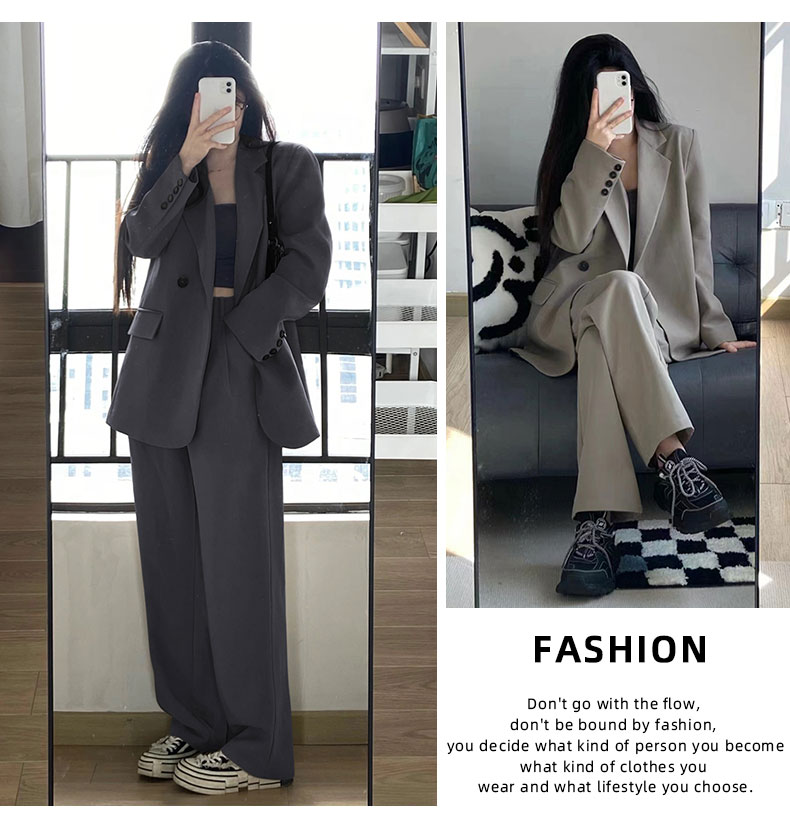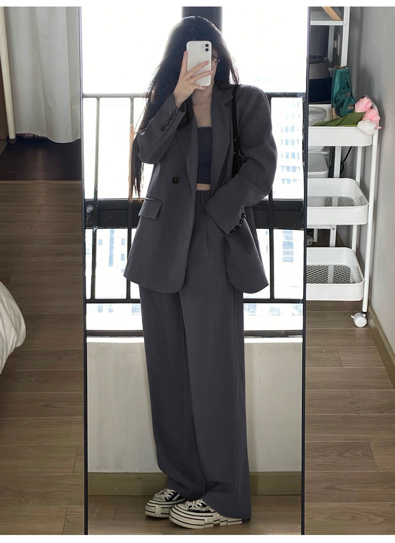 회색 작은 세트 재킷 여성의 2024 년 초봄 및 가을 새로운 두 조각 세트 작은 캐주얼 세트 세트스토어 가기