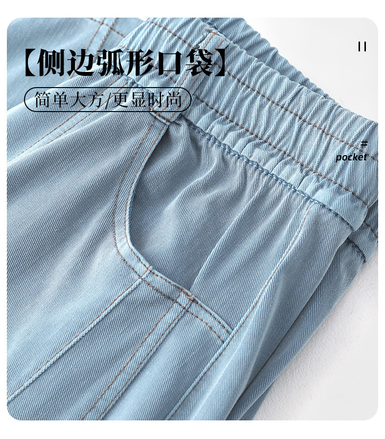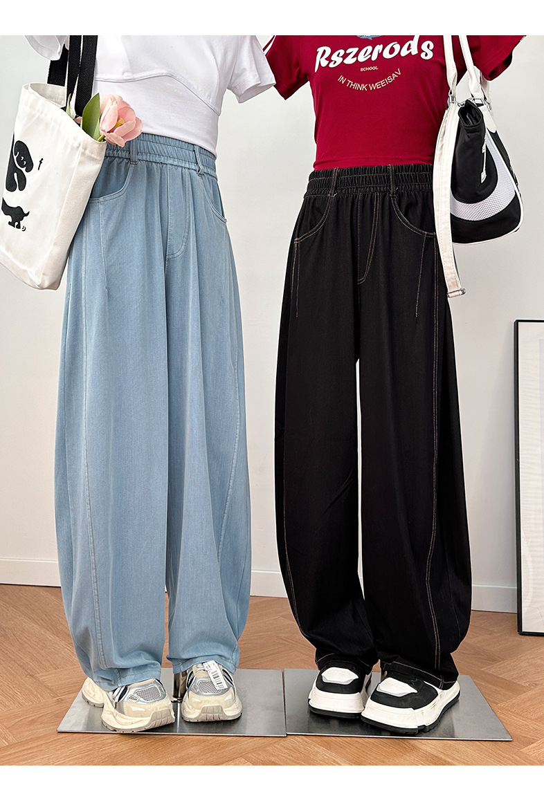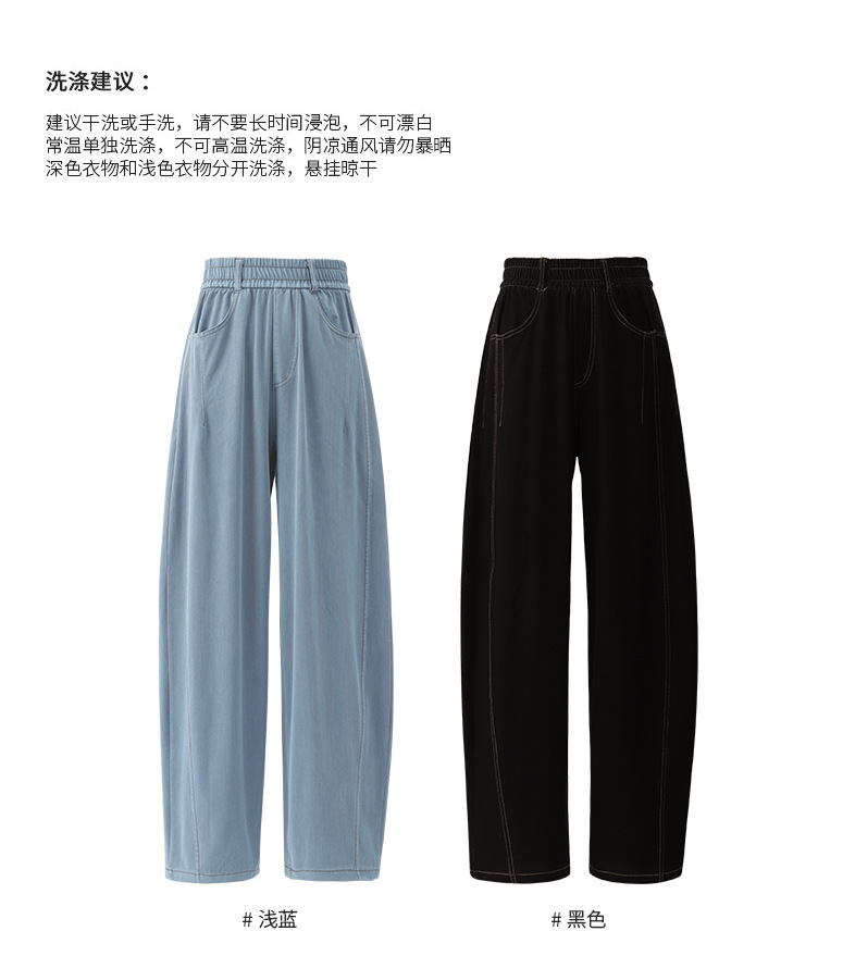 텐셀 청바지 여성의 봄과 여름 얇은 바나나 바지 높은 허리 배 모양의 그림 투약 아이스 실크 캐주얼 스트레이트 와이드 다리 바지