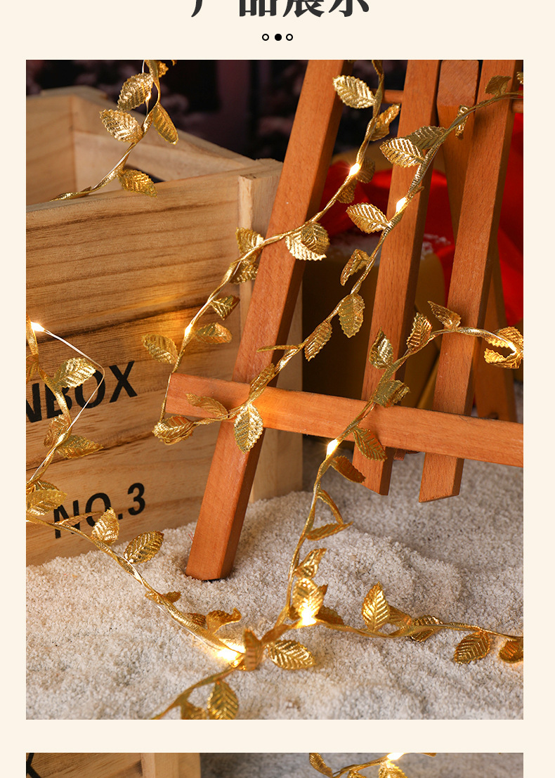 새로운 국경 LED 황금 잎 구리 와이어 라이트 스트링 등나무 화환 크리스마스 휴일 장면 장식 라이트 스트링스토어 가기