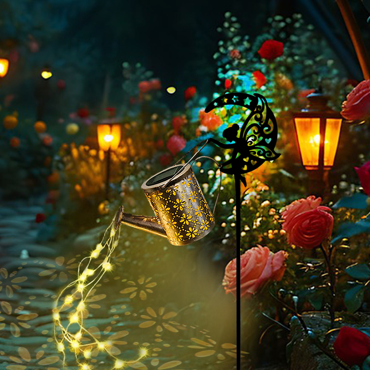 국경 간 창조적 인 태양 주전자 꽃 요정 C 철 공예 안뜰 잔디 충전 조명 램프 정원 플러그인스토어 가기