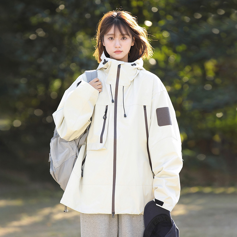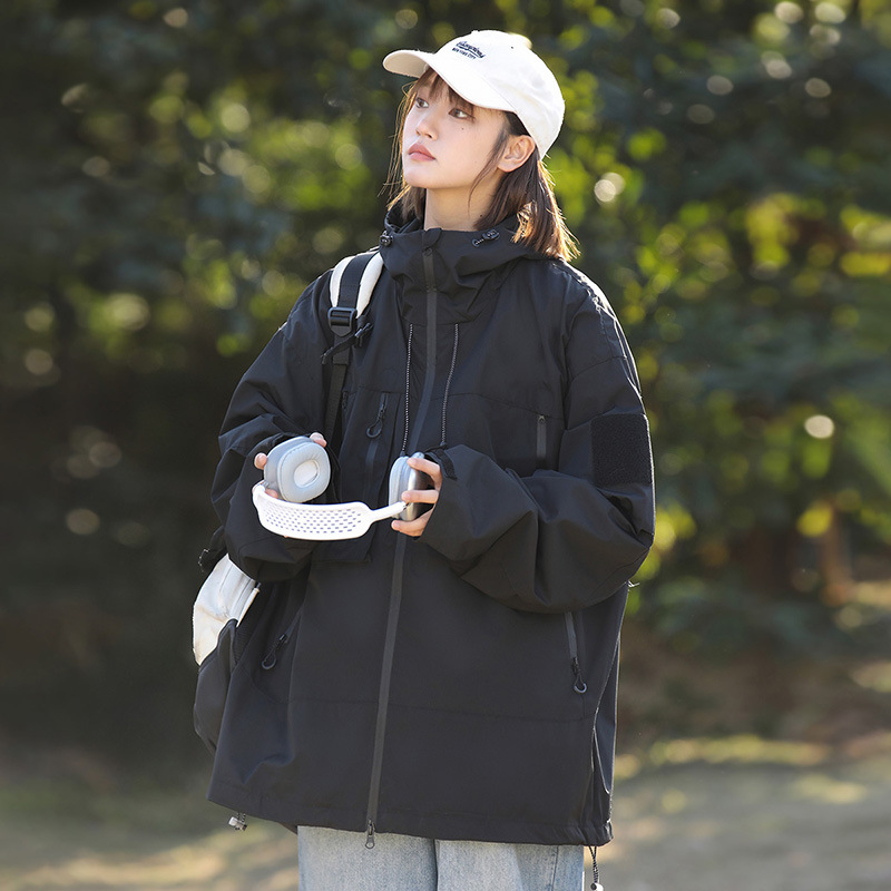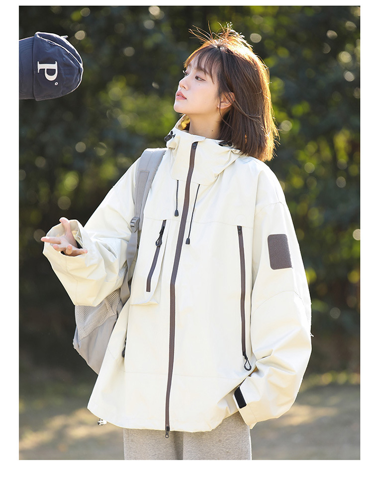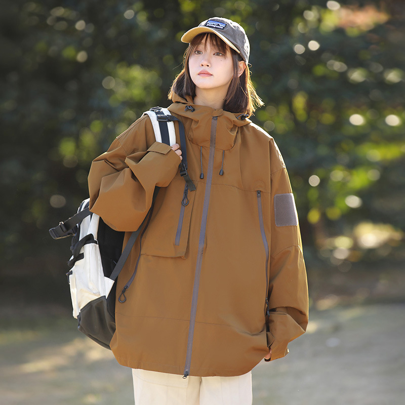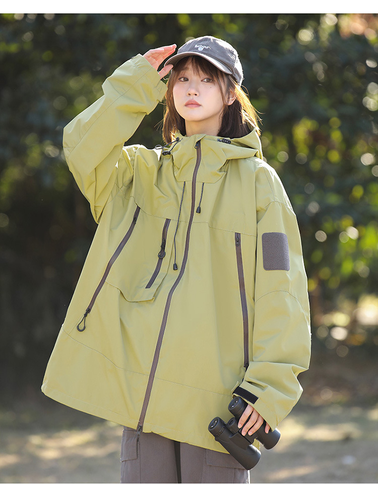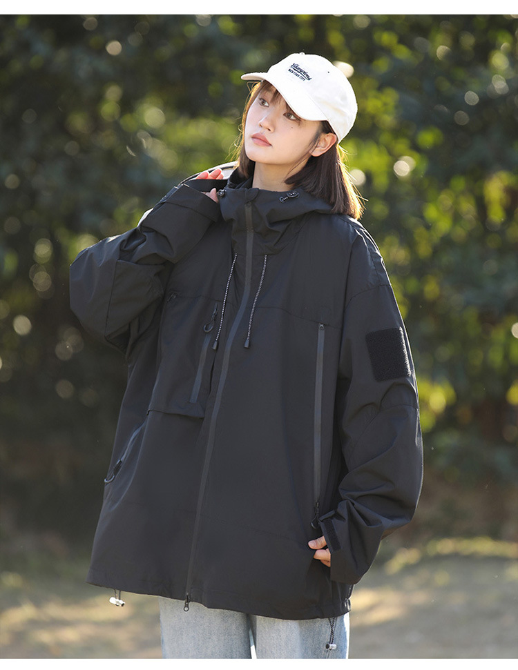 커플 재킷 남성 기능성 스타일 작업복 가방 야외 방수 가을 얇은 여성용 느슨한 재킷