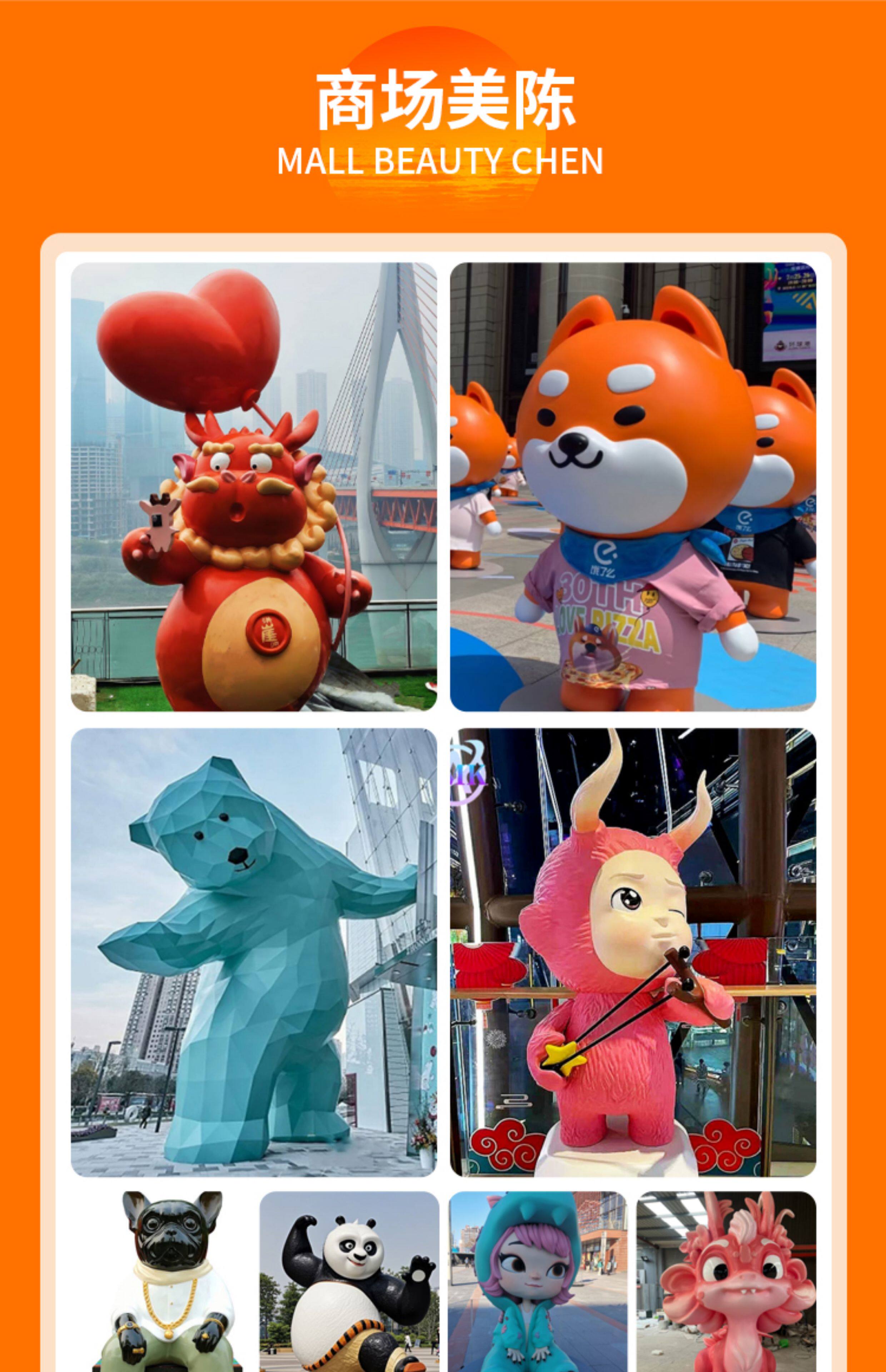 유리 섬유 강화 플라스틱 조각 IP 이미지 인터넷 유명 만화 캐릭터 동물 인형 야외 큰 풍경 아름다운 첸 스케치 장식품스토어 가기
